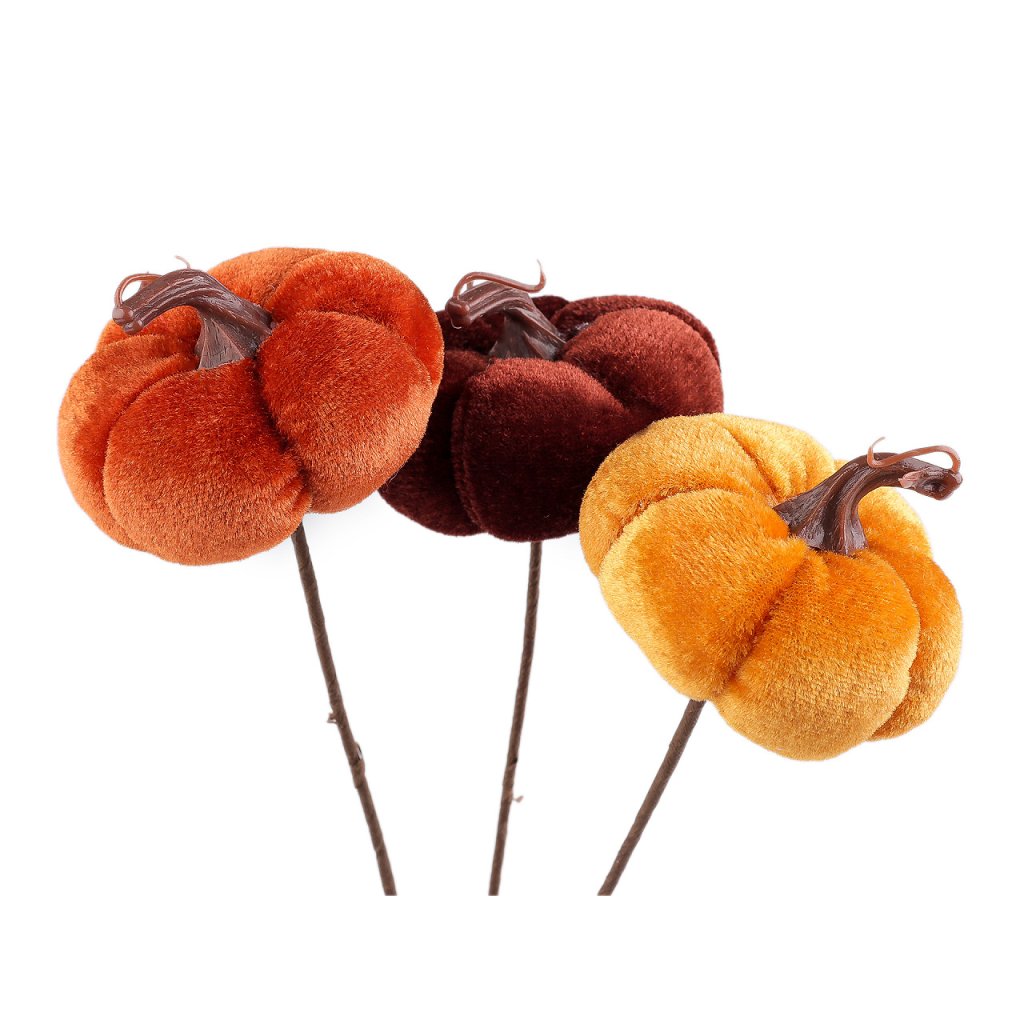 Dieser dekorative Samtkürbis ist ein echter Hingucker in Herbstgestecken, Schachteln, Blumentöpfen und Kränzen. Die samtige Oberfläche verleiht ihm ein luxuriöses Aussehen. Der Kürbis sitzt auf einem langen, stabilen Stiel und lässt sich so einfach und sicher platzieren.