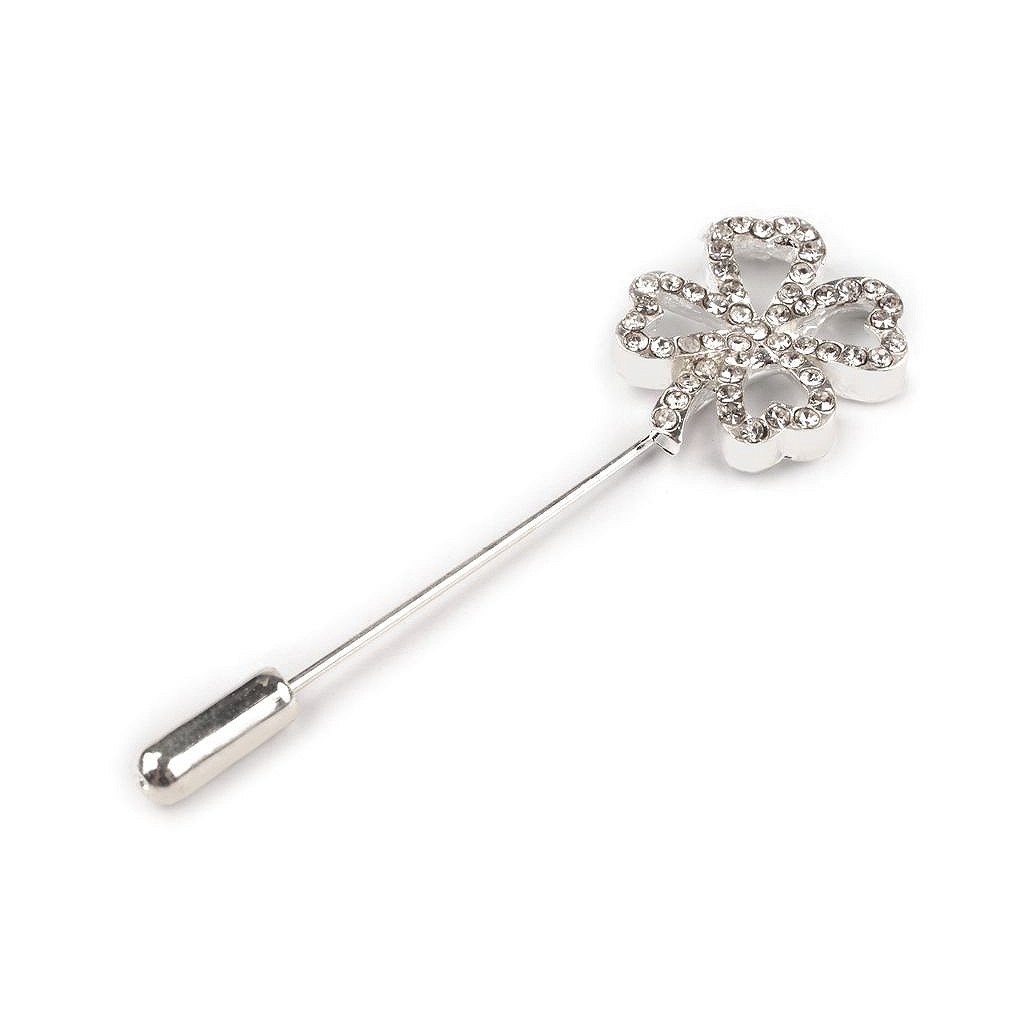 Eine dekorative Anstecknadel mit Kleeblatt ist ein Geschenk, das Freude bereitet, denn das vierblättrige Kleeblatt ist ein Symbol für Glück. Das Kleeblatt ist mit kleinen Strasssteinen besetzt , die schillernd glitzern. Am Ende der Nadel befindet sich ein Stopper gegen Durchstechen oder Herausziehen. Tipp: Mit dieser Stecknadel können Sie Organza oder andere Dekostoffe befestigen, die für festliche Tisch- oder Stuhlhussen verwendet werden.