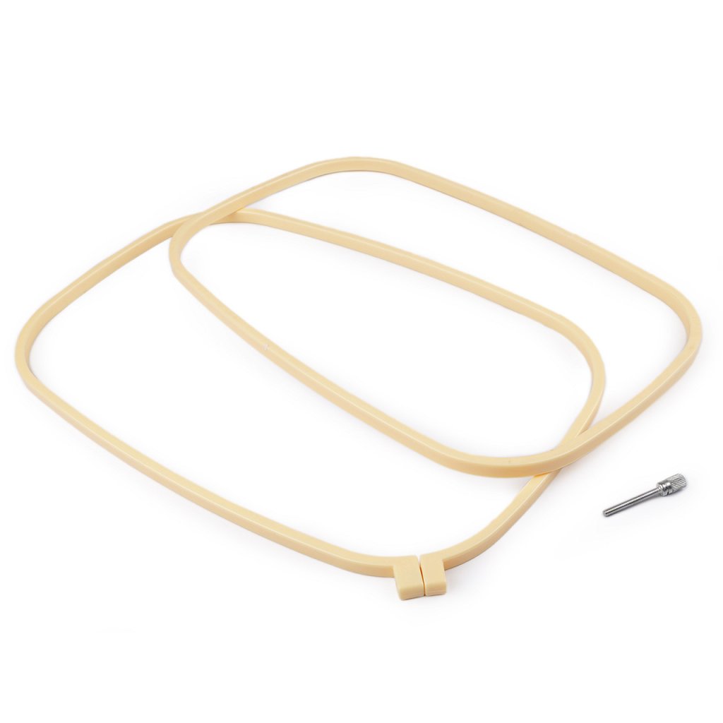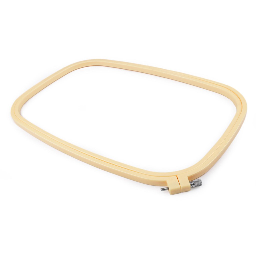 Stickrahmen aus Kunststoff mit Befestigungsschraube aus Metall. Mit seiner Hilfe wird der Stickstoff im Rahmen fixiert und abgestellt.