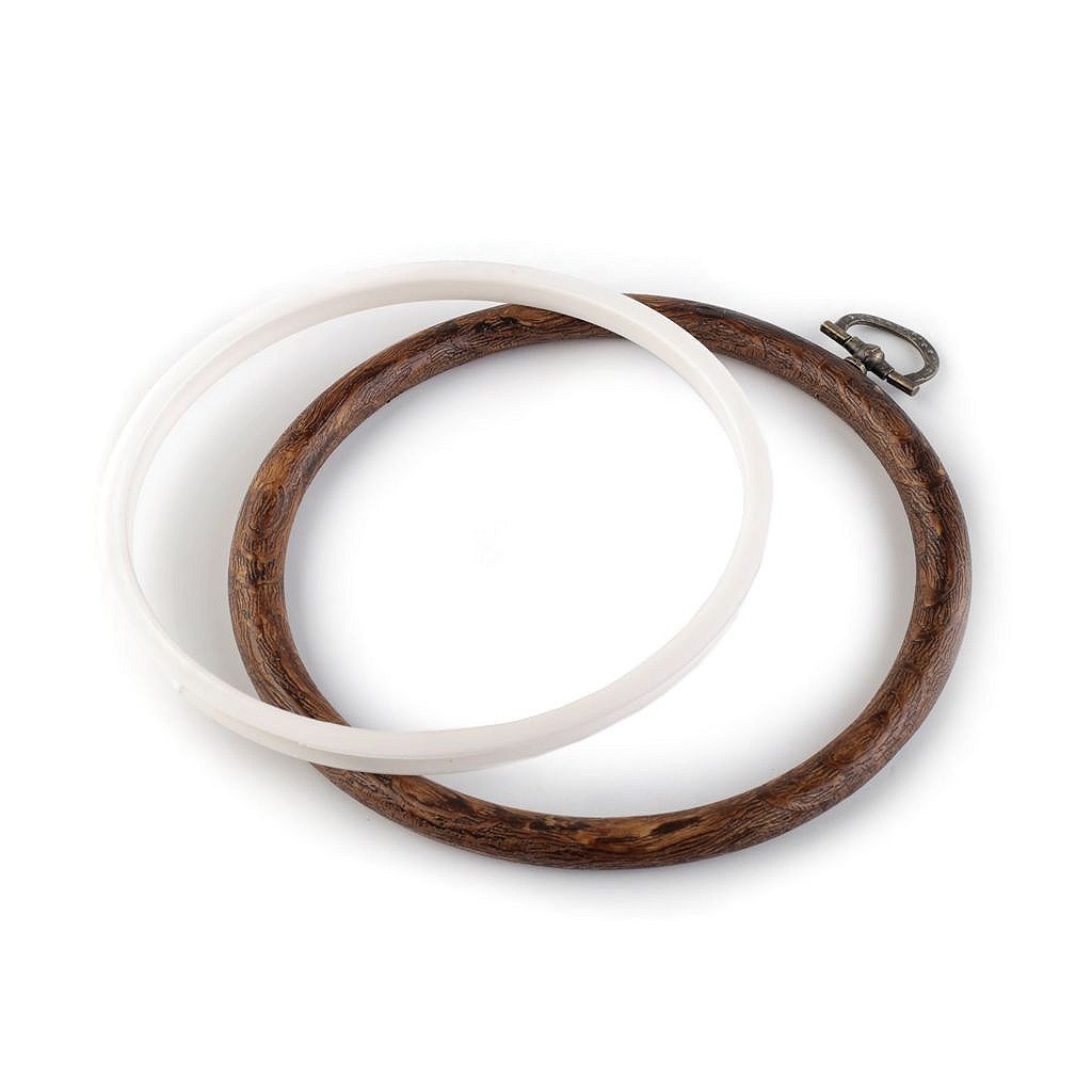 Runder Stickrahmen dient als Hilfsmittel bei der Stickarbeit - er hält den Stoff fest.