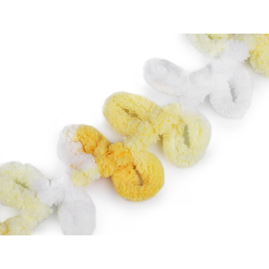 Alize Puffy Farbe ist ein weiches, haariges Chenillegarn mit großen Schlaufen. Sie schaffen schöne Farbübergänge . Zum Stricken benötigen Sie weder eine Nadel noch einen Haken - die einzelnen Maschen sind miteinander verflochten. Es eignet sich zum Stricken von Decken, Schals usw. Der ungefähre Verbrauch auf einer Decke von 100 x 100 cm beträgt ungefähr 5 Kugeln.