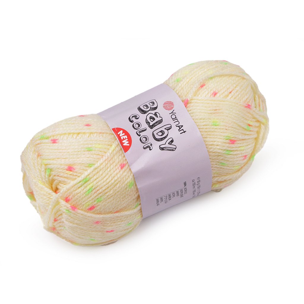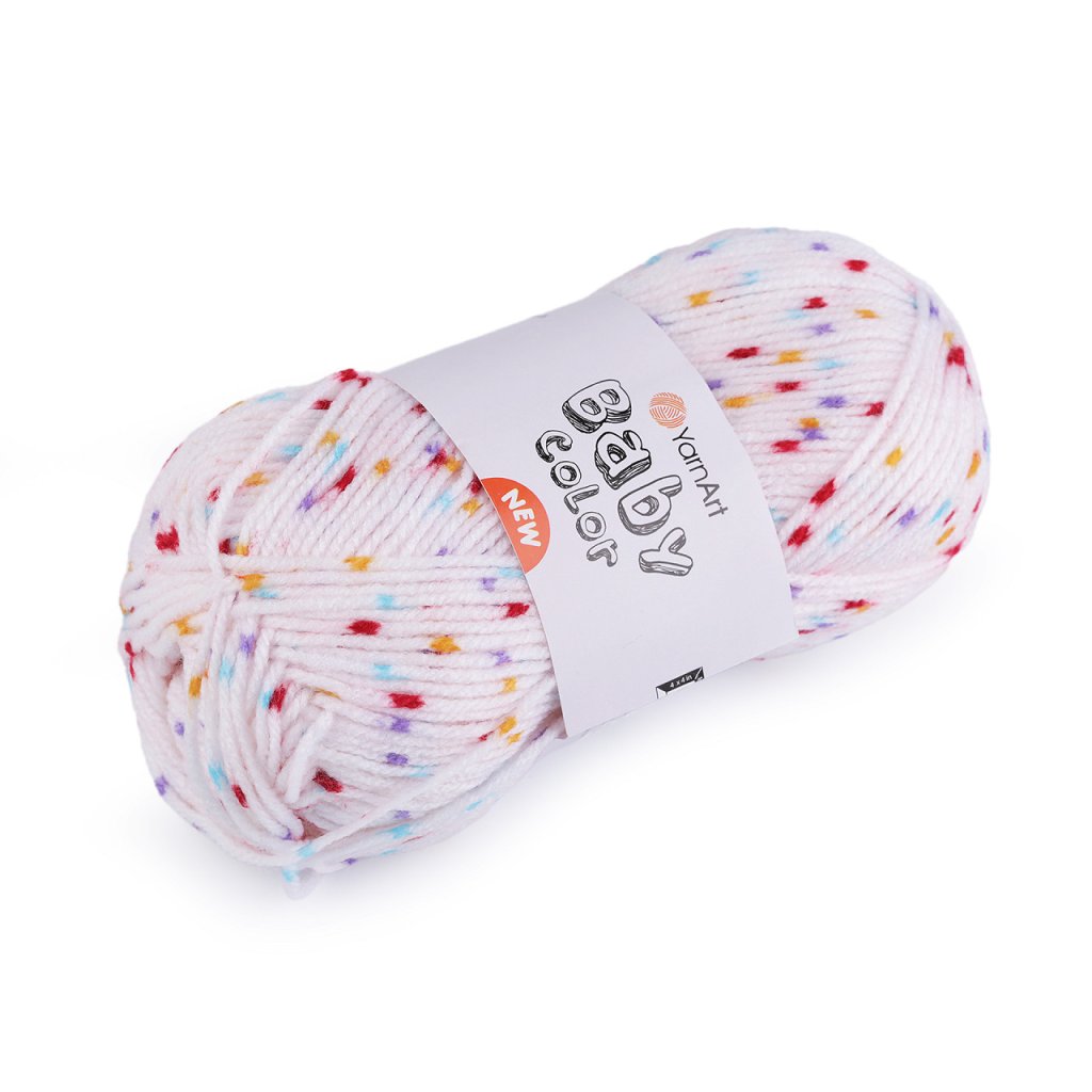 Baby Color Strickgarn mit interessantem Farbeffekt ist weich, leicht und angenehm im Griff. Es hat eine Anti-Pilling-Behandlung , die Pilling verhindert. Es ist auch hypoallergen , was Sie bei der Herstellung von Hüten, Pullovern, Kleidern, Decken und anderen Dingen für die jüngsten Kinder und Babys zu schätzen wissen. Nadelstärke: 3,5 Hakengröße: 3,5