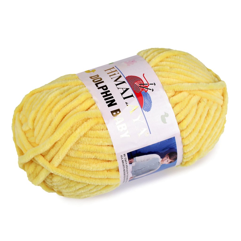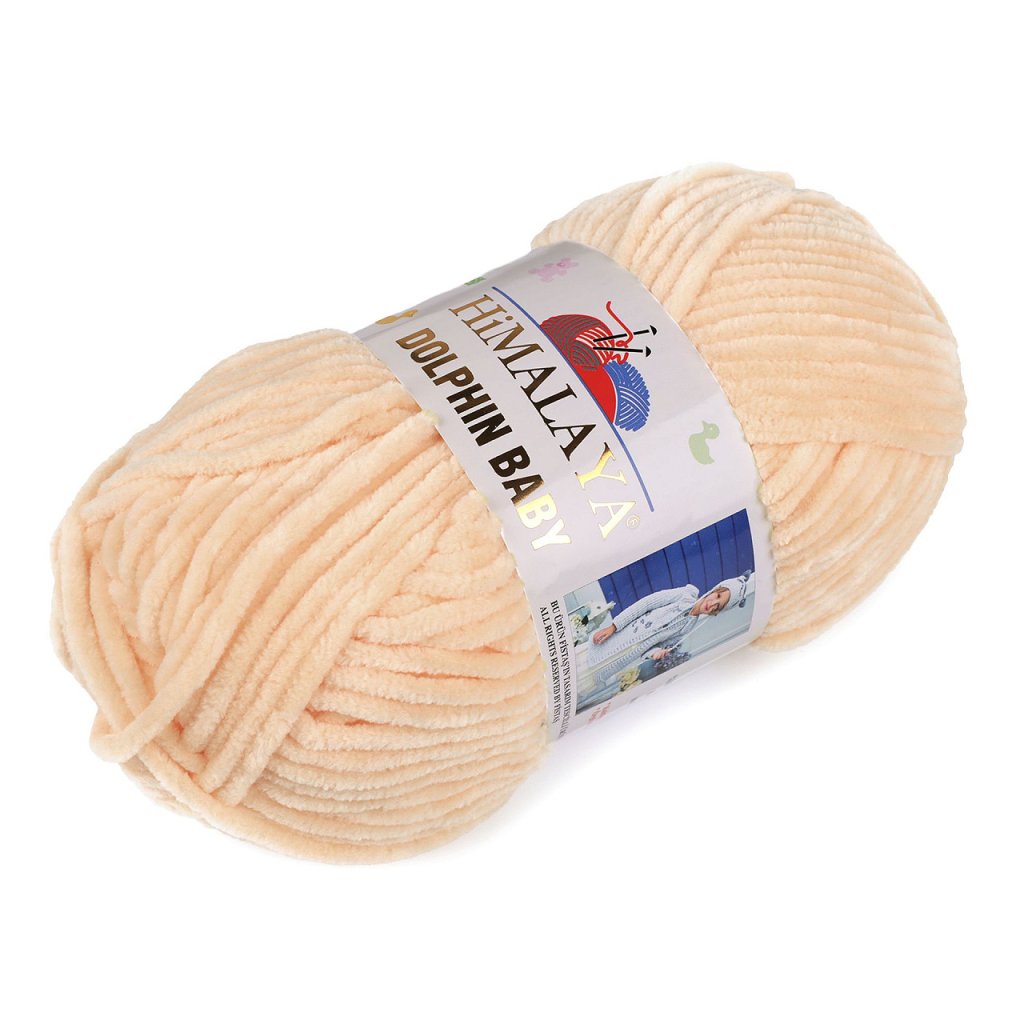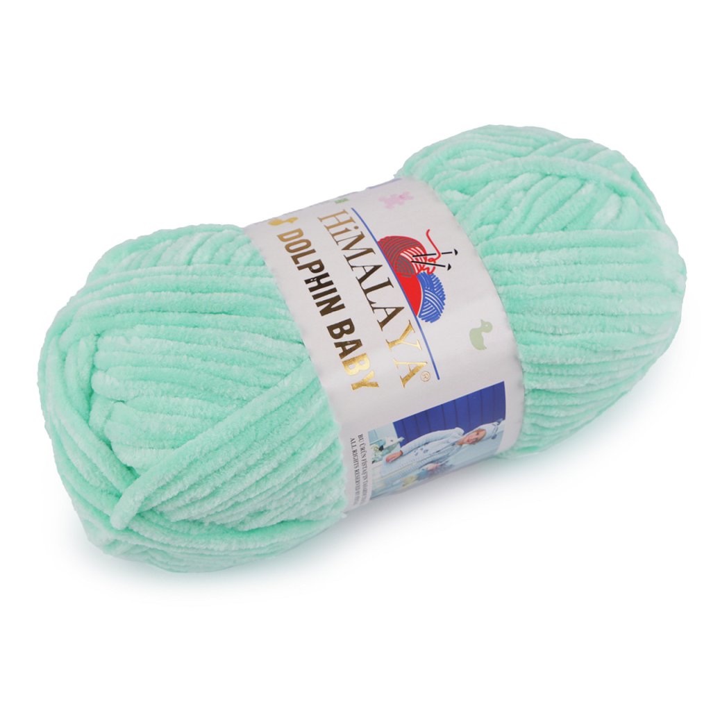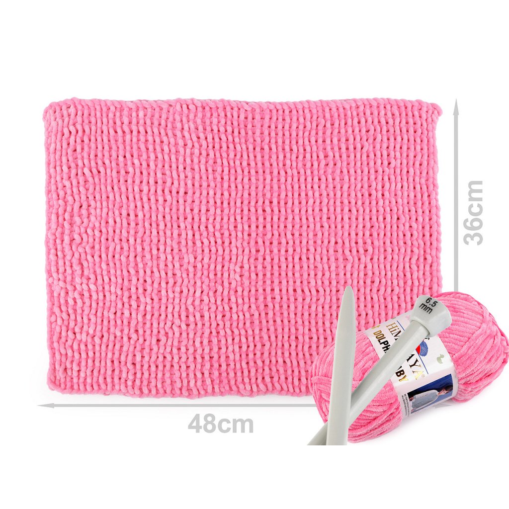 Chenillegarn Dolphin Baby ist sehr weich und flauschig . Es wird Sie in der kalten Jahreszeit angenehm wärmen. Sie können das Garn zum Stricken von Pullovern, Schals, Mützen und warmen Socken verwenden. Die Dicke des Garns beträgt ca. 4,5 mm. Nadelstärke: 6,5 Hakengröße: 7 Wenn Sie das Garn reißen, müssen Sie sehr vorsichtig vorgehen, um es nicht zu beschädigen. Wir empfehlen, vor dem Stricken/Häkeln ein Probemuster anzufertigen. Das Muster auf dem Foto (48 x 36 cm) wurde aus 1 Knäuel mit Nadeln Nr. 6,5 gestrickt.