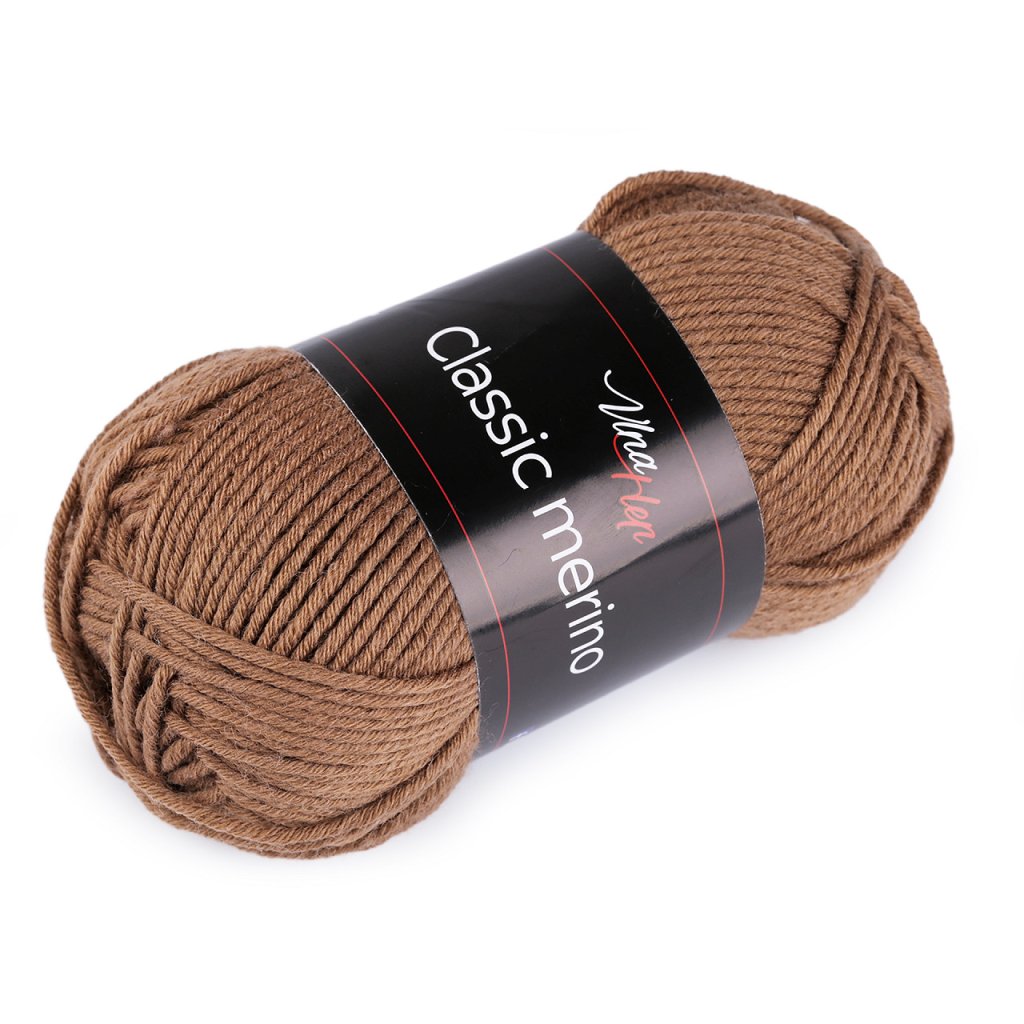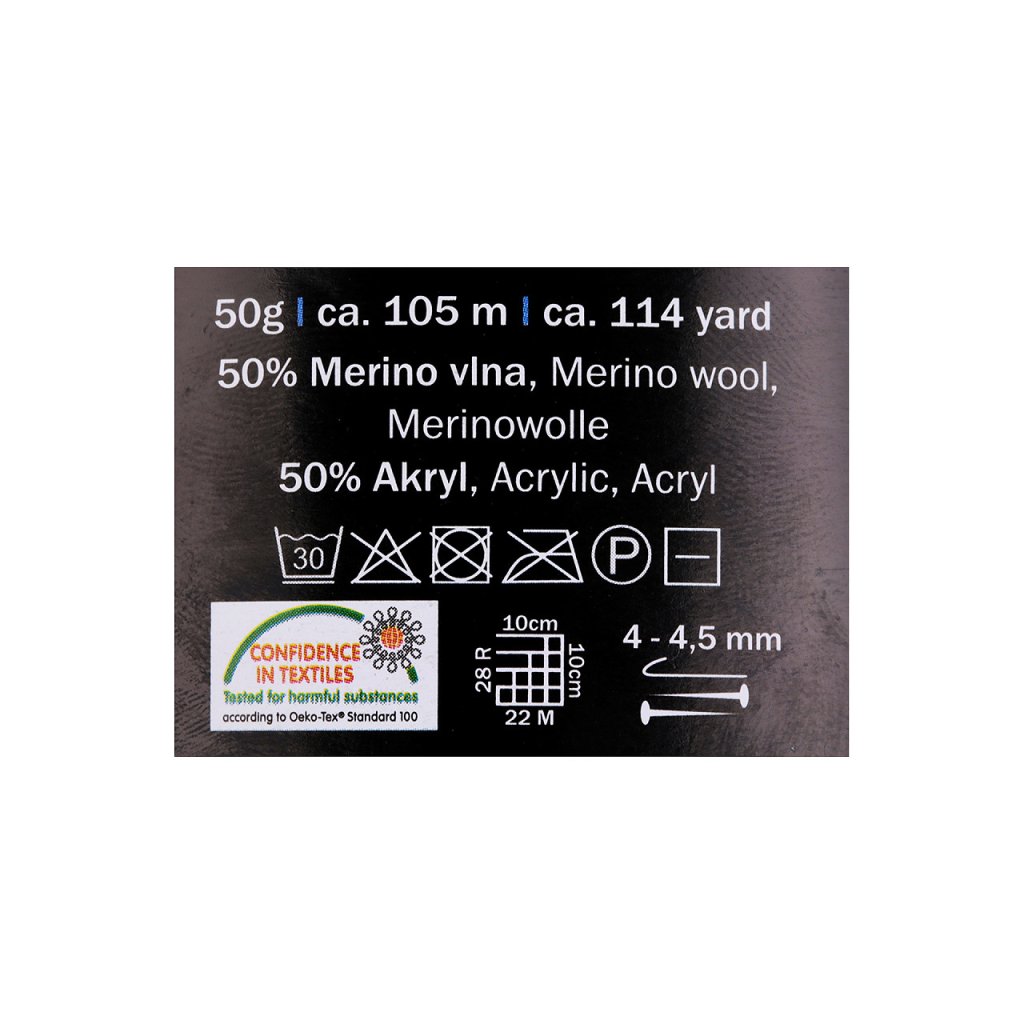 Klassisches Merino-Strickgarn verfügt aufgrund des Wollanteils über hervorragende thermoregulierende Eigenschaften. Es kratzt nicht und fühlt sich angenehm an. Sie können es zum Stricken oder Häkeln von Pullovern, Mützen, Handschuhen, Schals usw. verwenden. Nadelstärke: 4 - 4,5 Hakengröße: 4 - 4,5