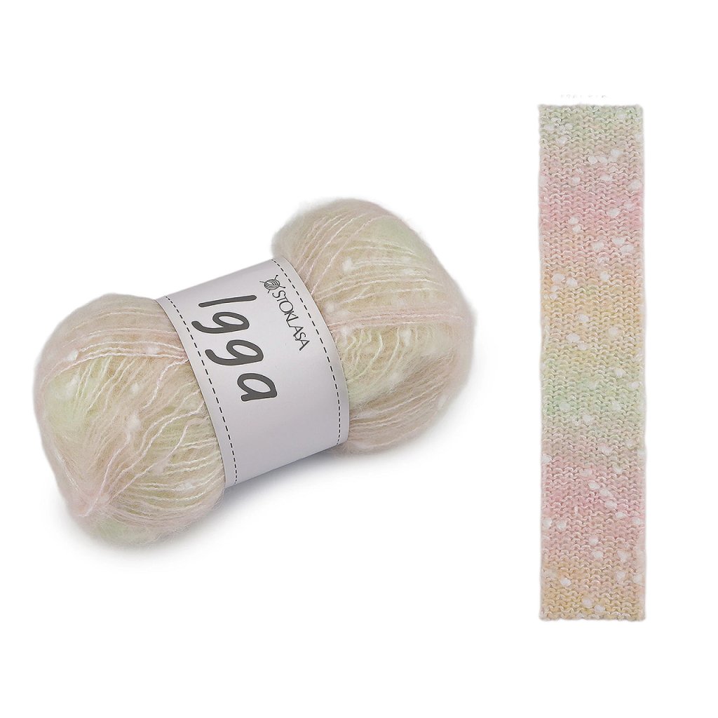 Igga-Garn fühlt sich angenehm an und besteht aus sehr feinen Fasern mit Farbübergängen. Es hat auch kleine Punkte , die den Produkten Originalität verleihen. Sie können das Garn zum Stricken oder Häkeln von Pullovern, Schals, Westen, Mützen usw. verwenden. Nadelstärke: 3 Hakengröße: 3,5 Wenn Sie das Garn zerreißen, müssen Sie sehr vorsichtig sein, um es nicht zu beschädigen. Wir empfehlen, vor dem Stricken/Häkeln eine Probe zu machen.