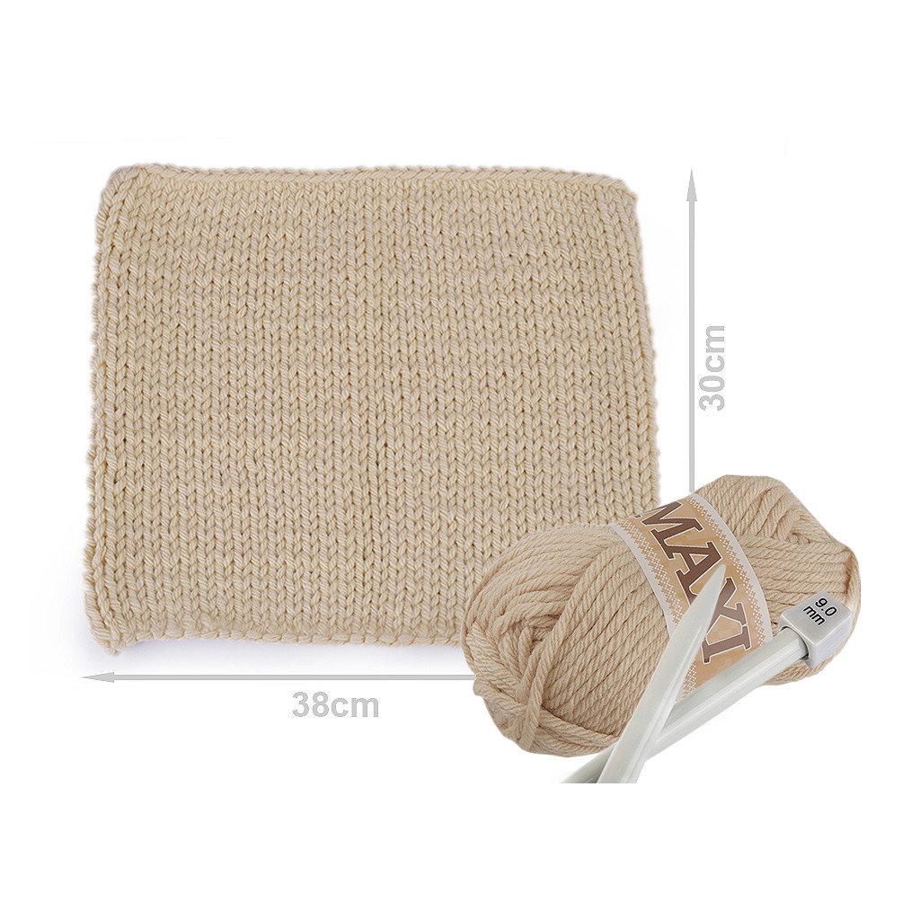 Jumbo-Maxi-Garn ist sehr leicht und angenehm anzufassen. Es wärmt Sie in der Kälte. Eine höhere Garnstärke eignet sich für Strickerinnen, die schnelles Stricken und voluminöse Strickwaren mögen. Geeignet für dicke Pullover, Mäntel, Schals oder Mützen. Nadelstärke: 9 Das Muster auf dem Foto (38 x 30 cm) wurde mit 1 Knäuel auf Nadelstärke 9 gestrickt.