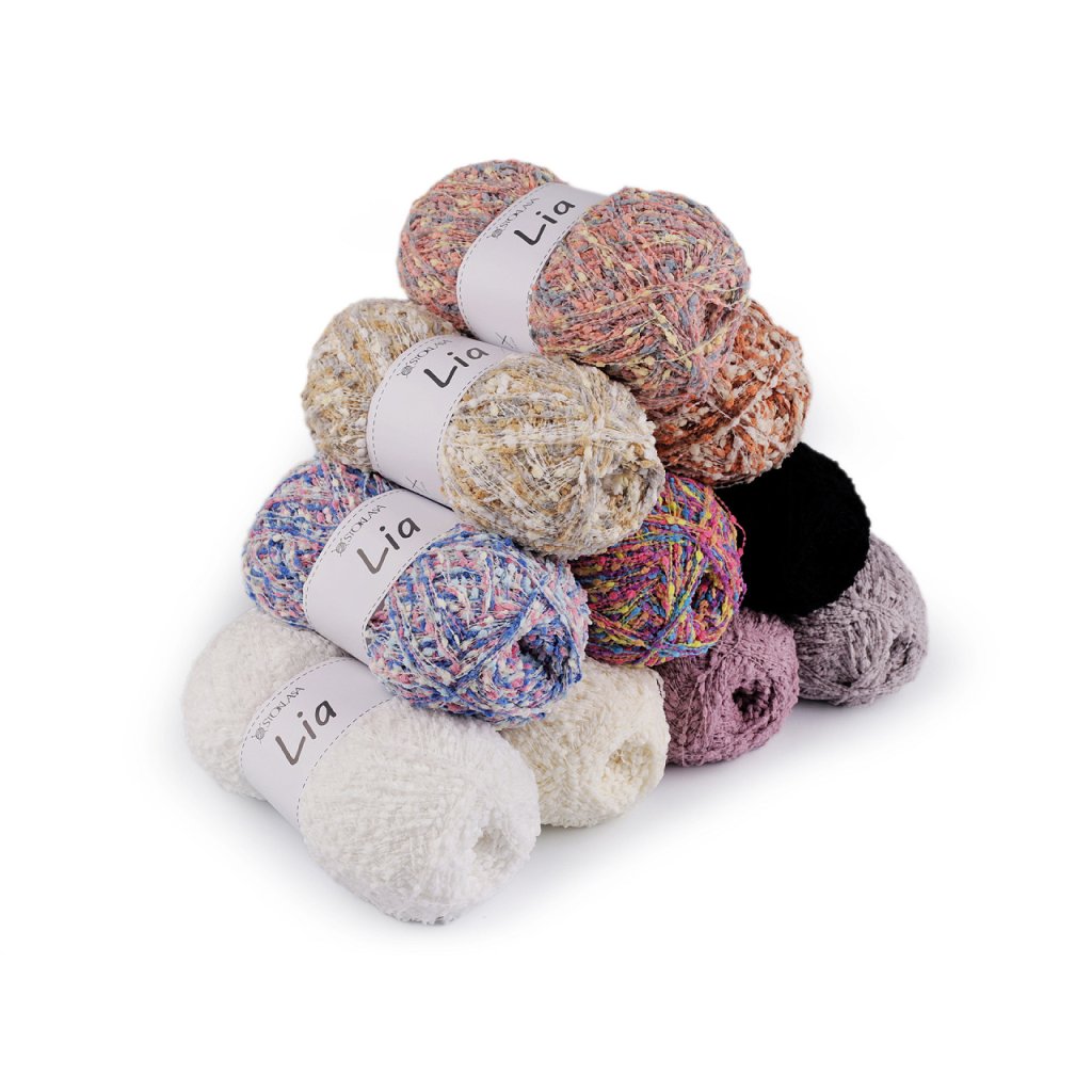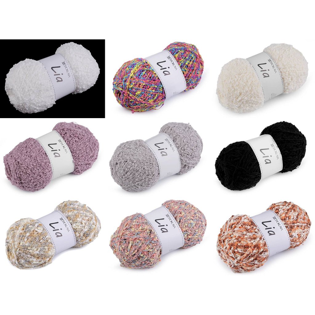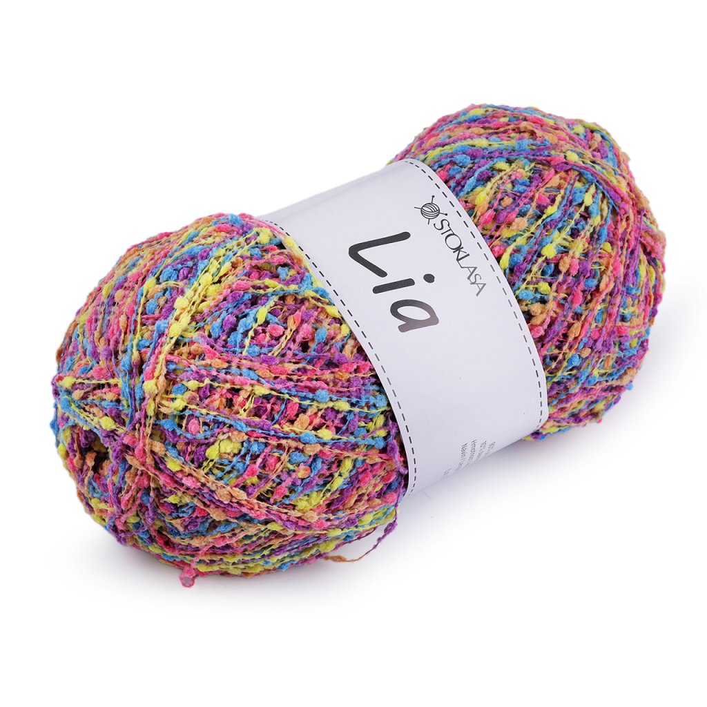 Lia-Garn fällt durch kleine Noppen auf, die dem fertigen Produkt Originalität verleihen. Sie können daraus Schals, Pullover, Westen usw. stricken. Nadelstärke: 3 - 4 Wenn Sie das Garn zerreißen möchten, müssen Sie sehr vorsichtig vorgehen, um es nicht zu beschädigen. Wir empfehlen, vor dem Stricken eine Probe zu machen.