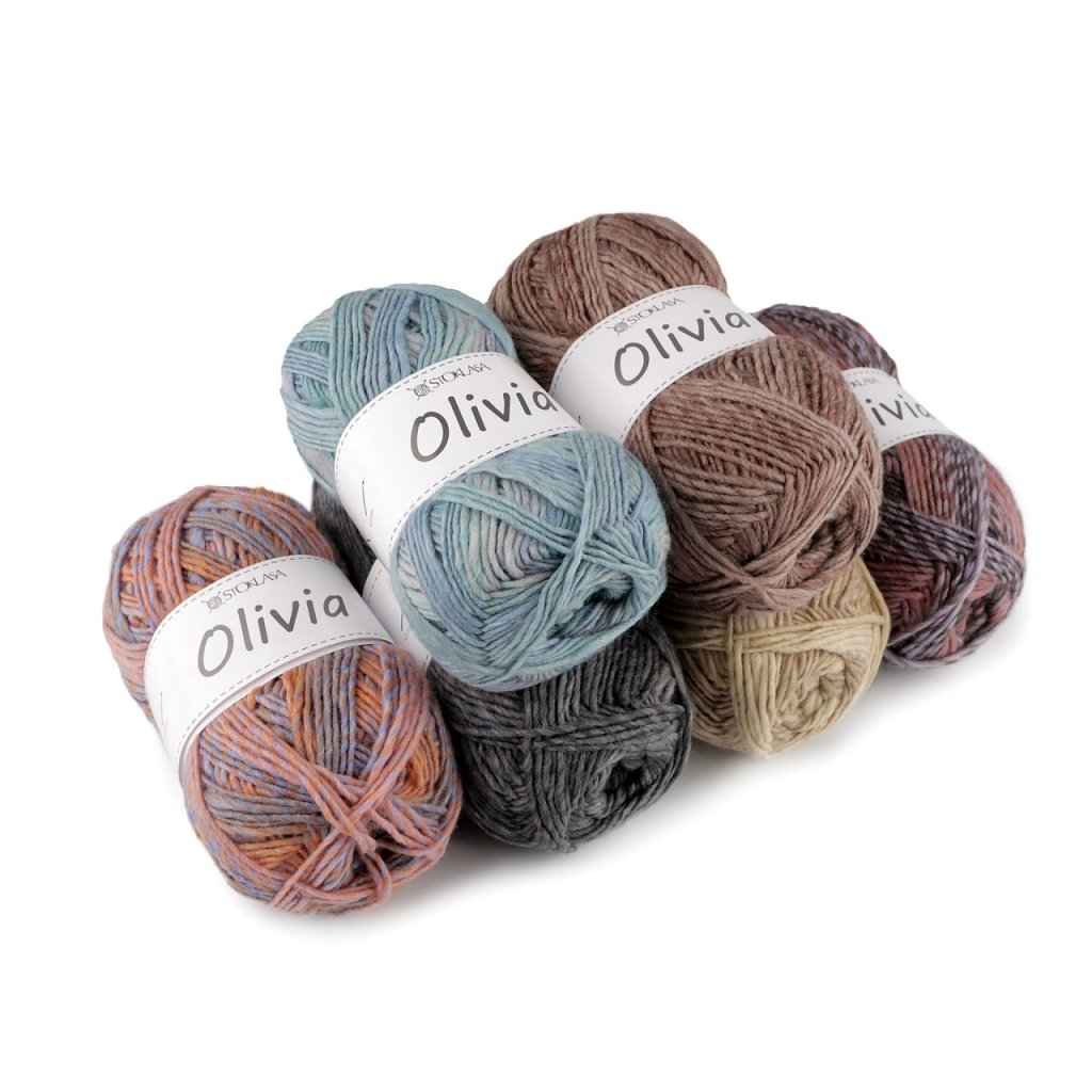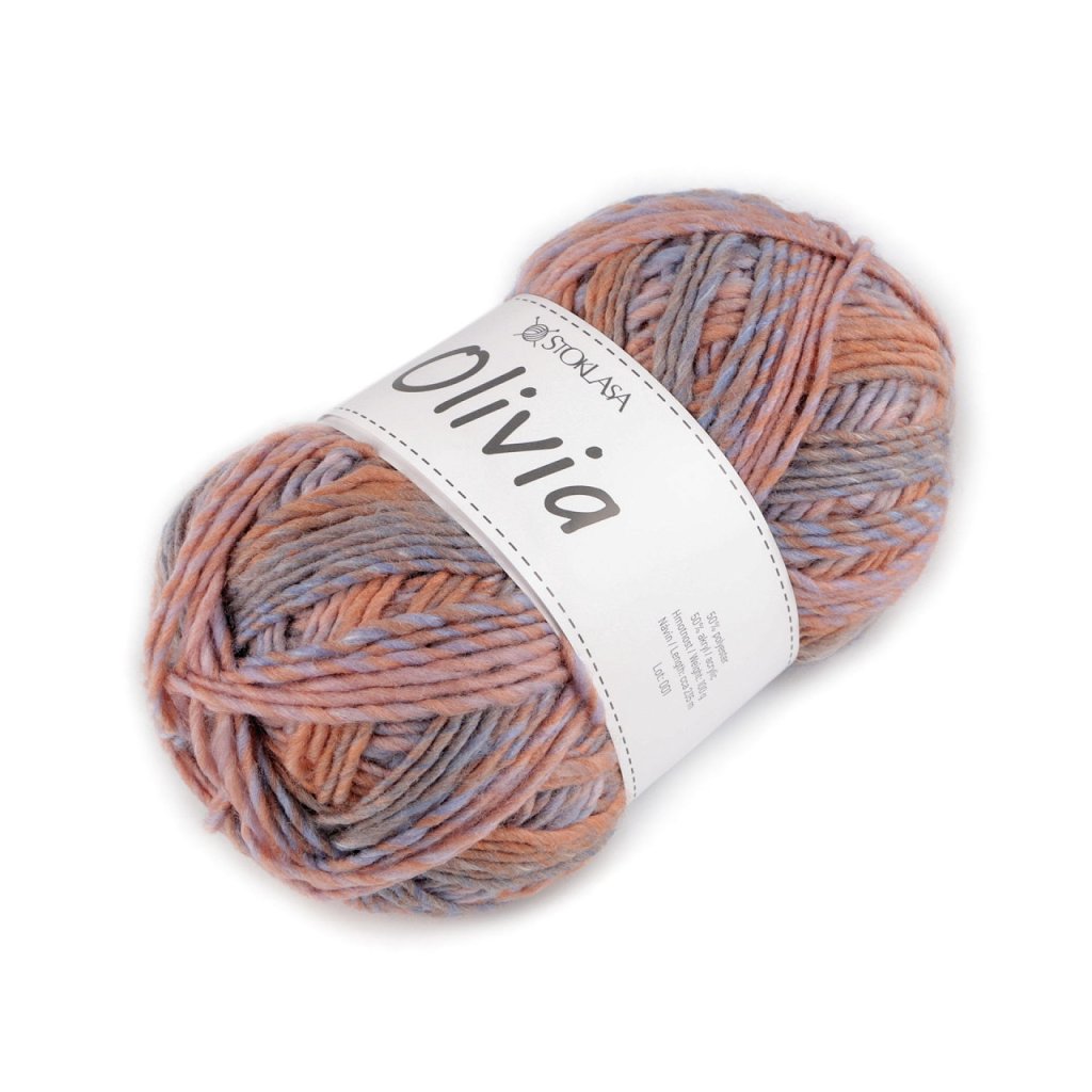Das Olivia-Garn verleiht Ihren Produkten ein einzigartiges Aussehen. Sie können daraus Pullover, Schals, Halstücher, Mützen, Plaids usw. stricken oder häkeln. Nadelstärke: 4,5 Hakengröße: 4,5 Das abgebildete Muster (95 x 31 cm) wurde aus 1 Knäuel, Nadel Nr. 4,5 gestrickt.