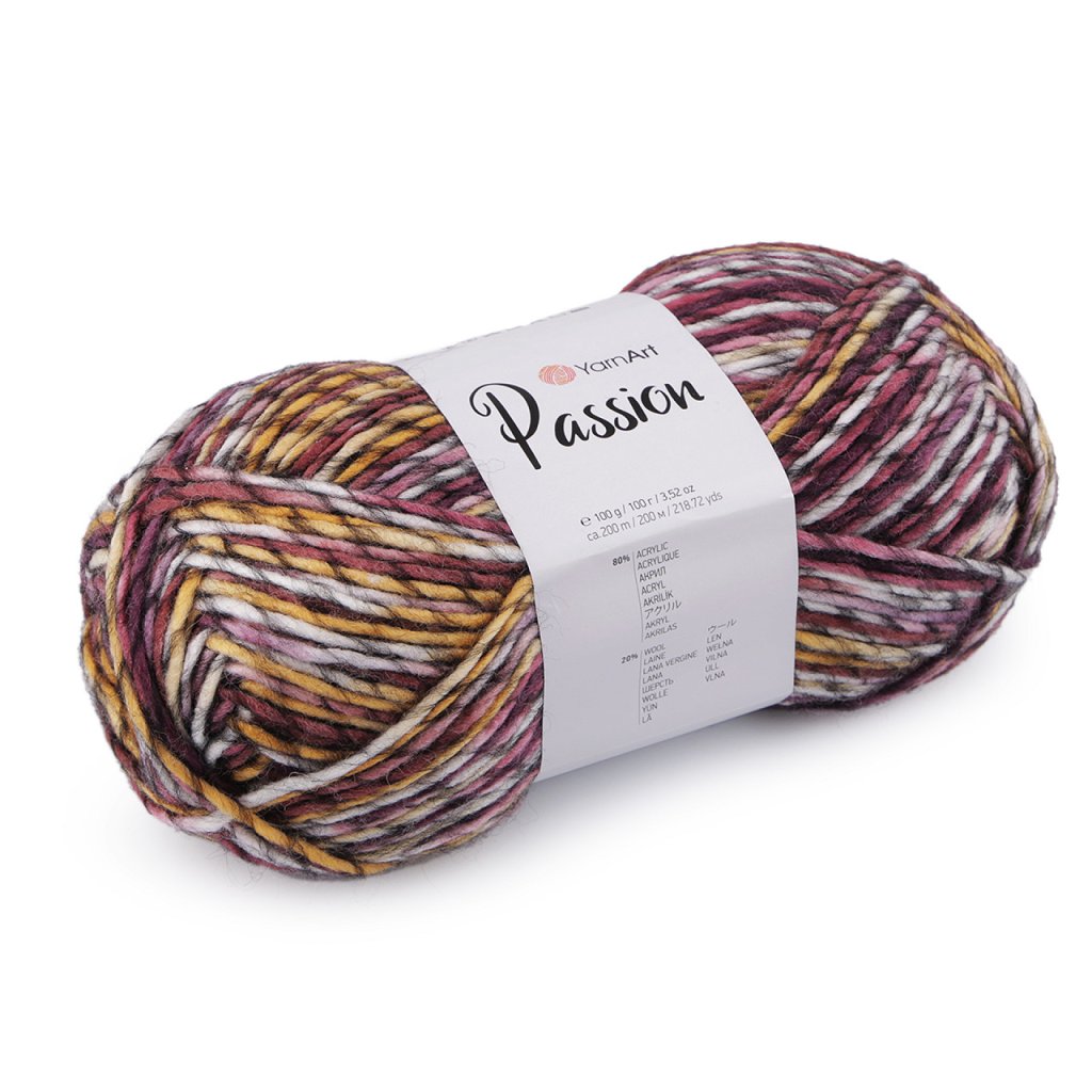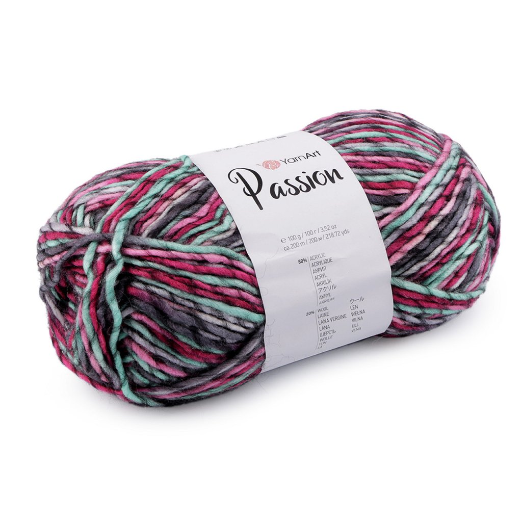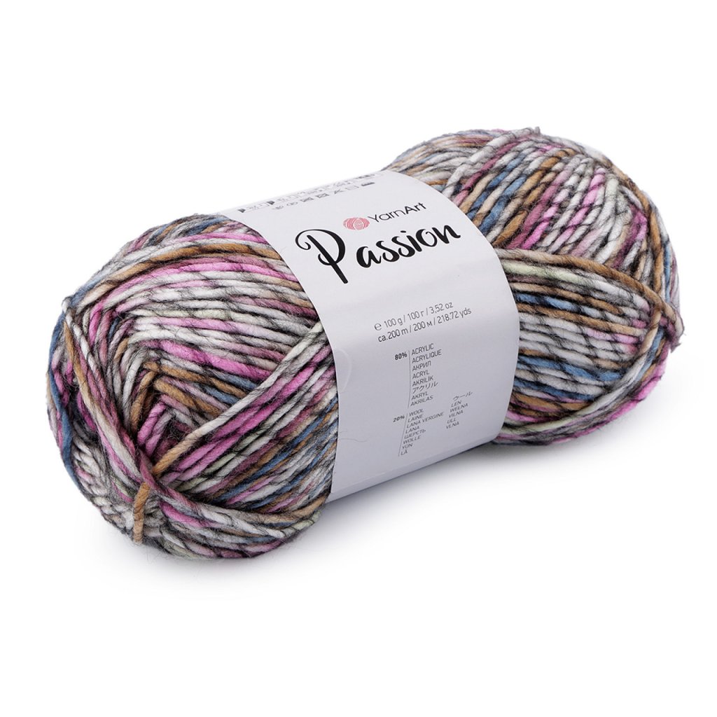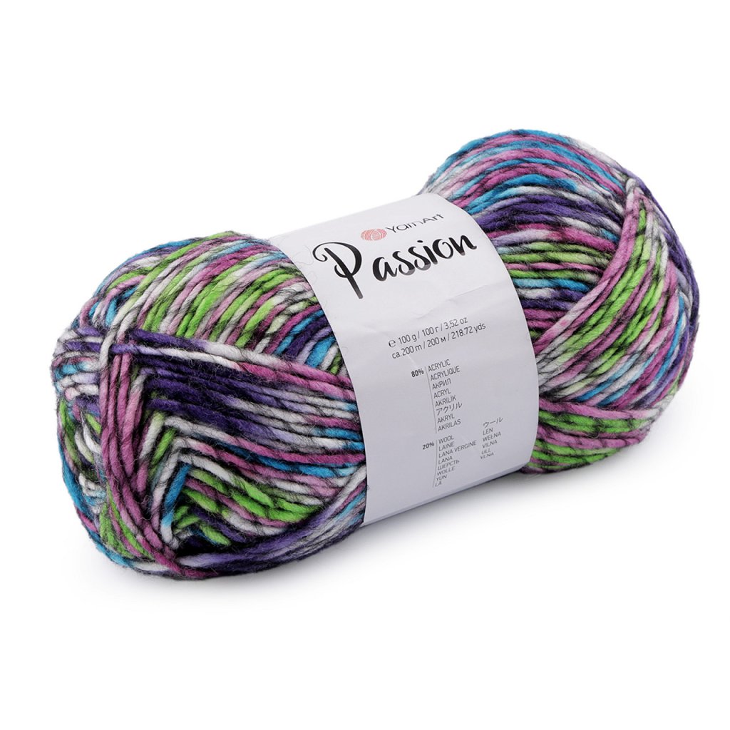 Mit Passion Strickgarn , mit einem Wollanteil, lassen sich interessante Produkte kreieren. Sie können damit Pullover, Schals, Westen, warme Socken, Mützen usw. herstellen. Nadelstärke: 5 Hakengröße: 5