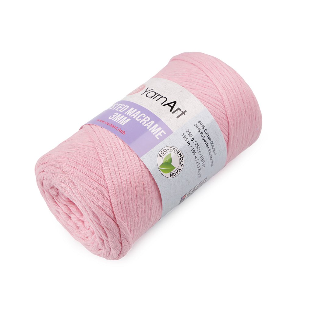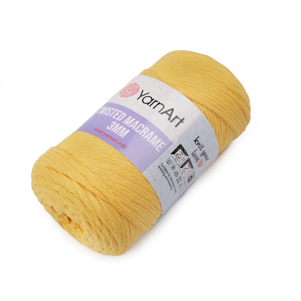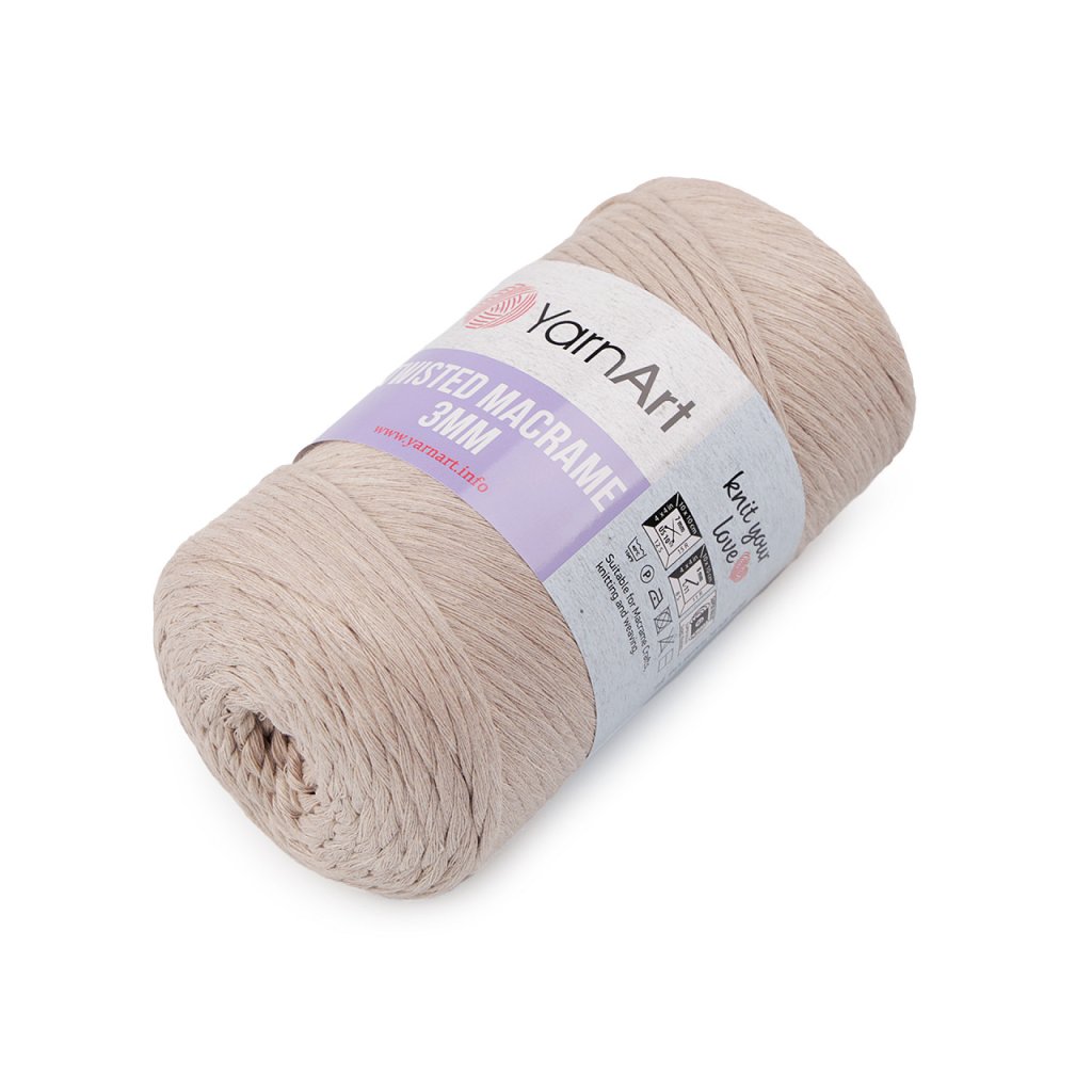 Das Twisted Macrame Garn ist durch seine Verarbeitung ideal für die Makramee (Schrubb) Technik. Sie können daraus interessante Innenaccessoires oder hängende Dekorationen herstellen. Es eignet sich auch zum Stricken oder Häkeln von Taschen, Teppichen oder Körben. Nadelstärke: 7 Hakengröße: 8
