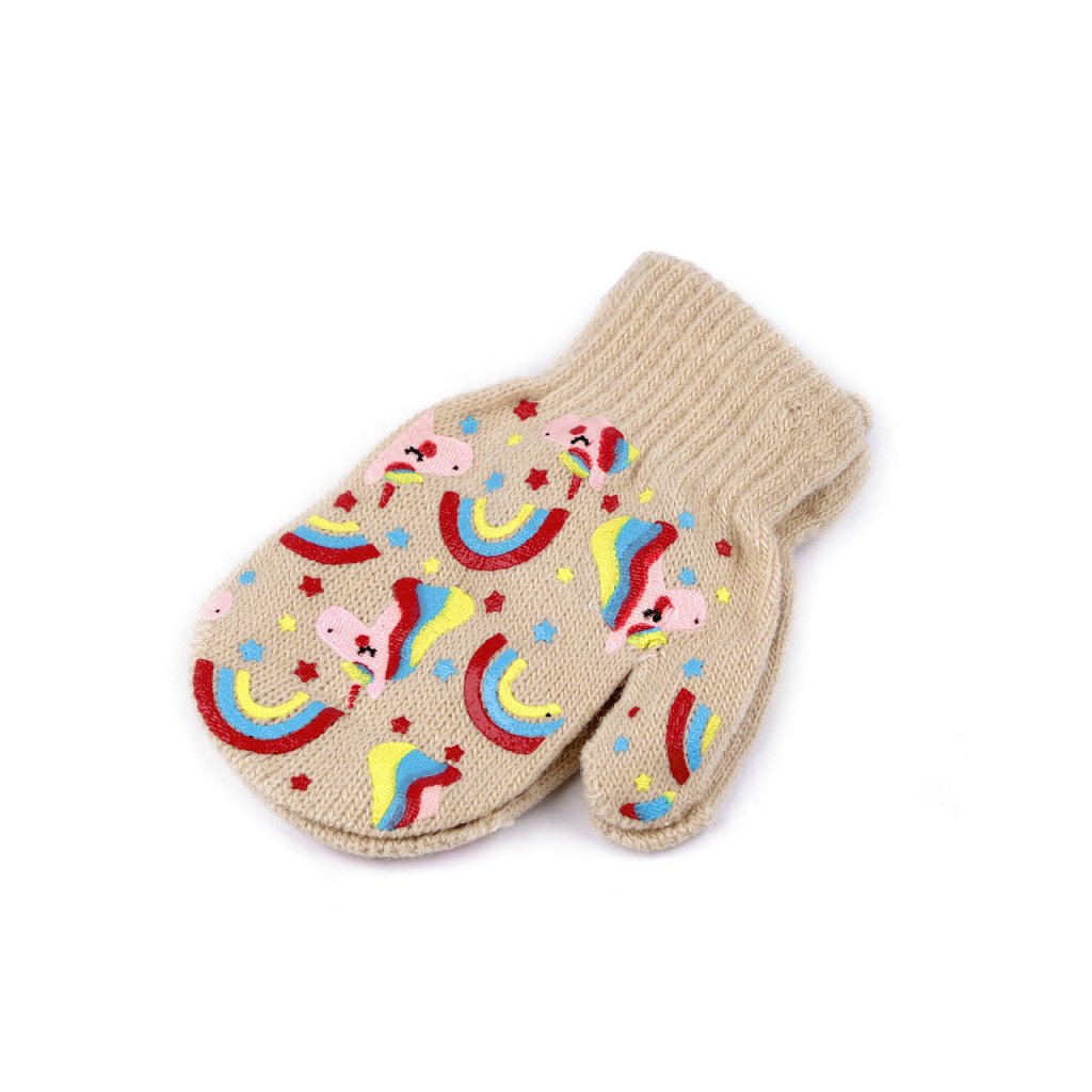 Gestrickte Kinderfäustlinge sind der ideale Begleiter für kleine Kinder, wenn ihnen kalt wird. Sie sind sehr flexibel, aus Strickstoff gefertigt , sitzen bequem an den Händen und sind dehnbar . Dank des elastischen Saums am Handgelenk halten sie sicher. 1 - 2 Jahre alt. Wir möchten unsere Kunden darüber informieren, dass die Zusammensetzung auf den Etiketten variieren kann; das Material besteht aus Polyester, Viskose und Elastan.