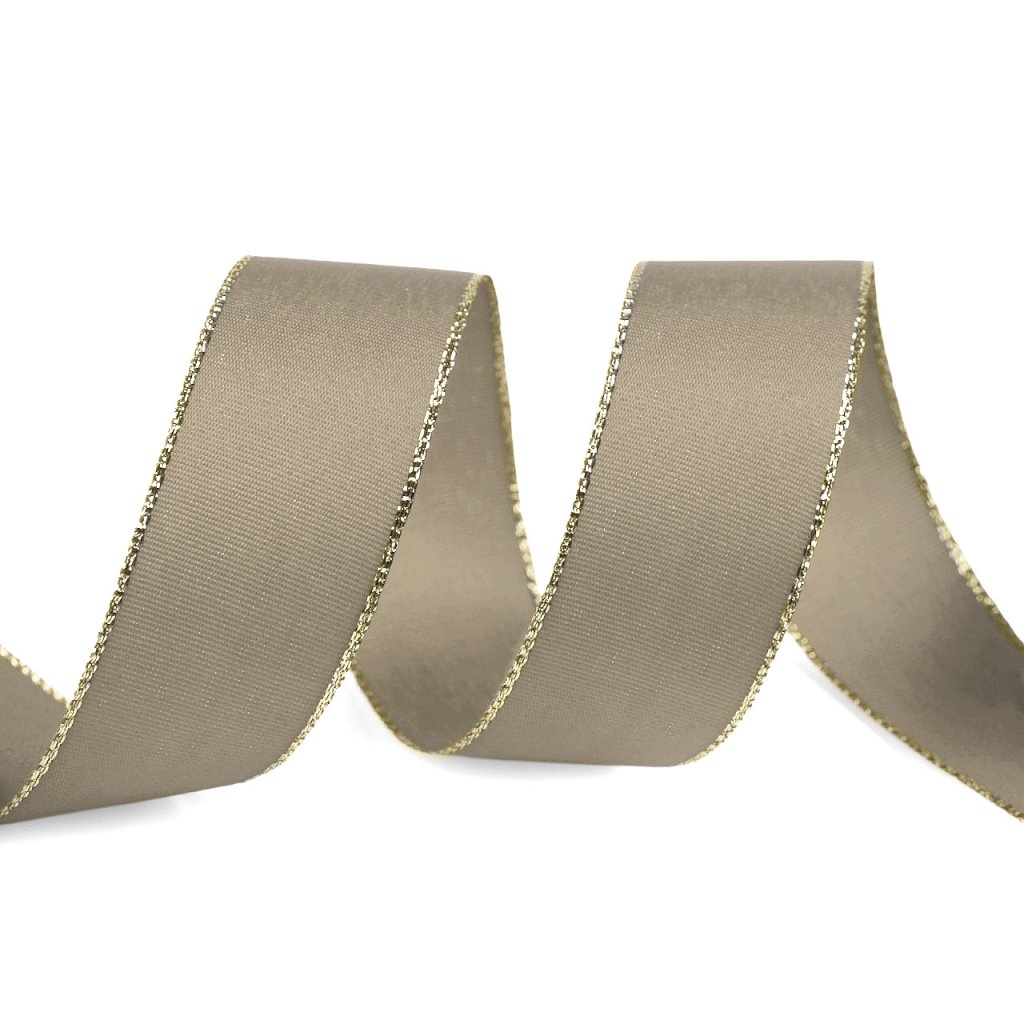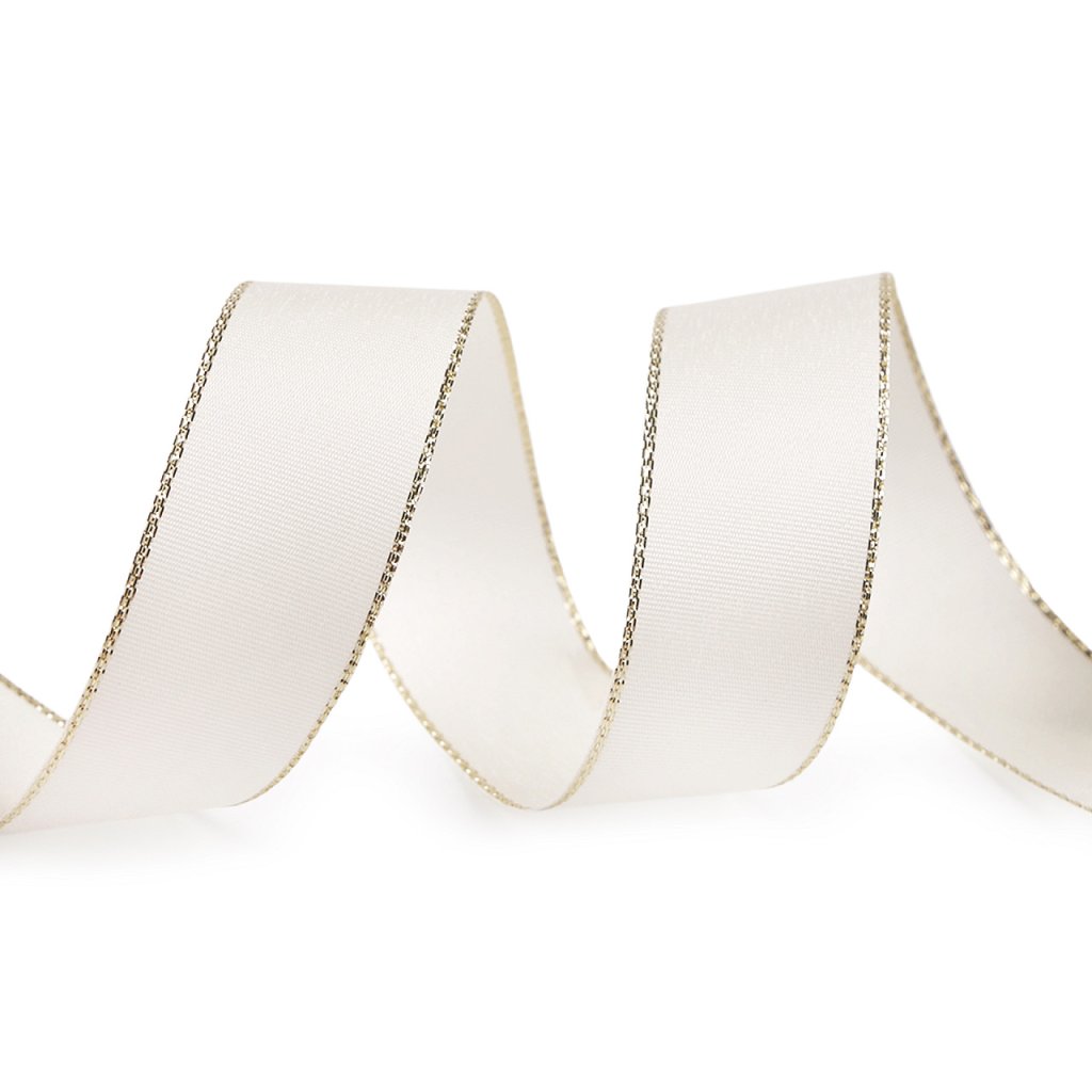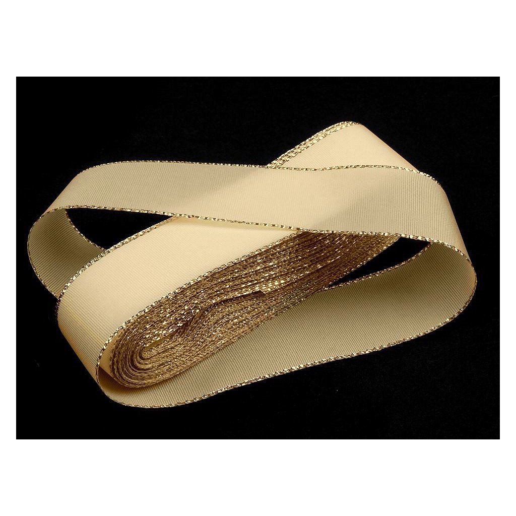 Taftband mit Lurex besticht durch seinen dezenten, edlen Schimmer. An den Seiten befindet sich Lurex, das Band eignet sich ideal zum Verzieren von Geschenkverpackungen, zur Gestaltung festlicher Tischdekorationen, Hochzeitsdekorationen oder verschiedener Kreativprojekte. Die Werksnorm der Firma Stuha erlaubt zwei Schnitte auf 10-Meter-Rollen, die miteinander verklebt werden, die Toleranz beträgt bei 10-Meter-Rollen +/- 10 cm.