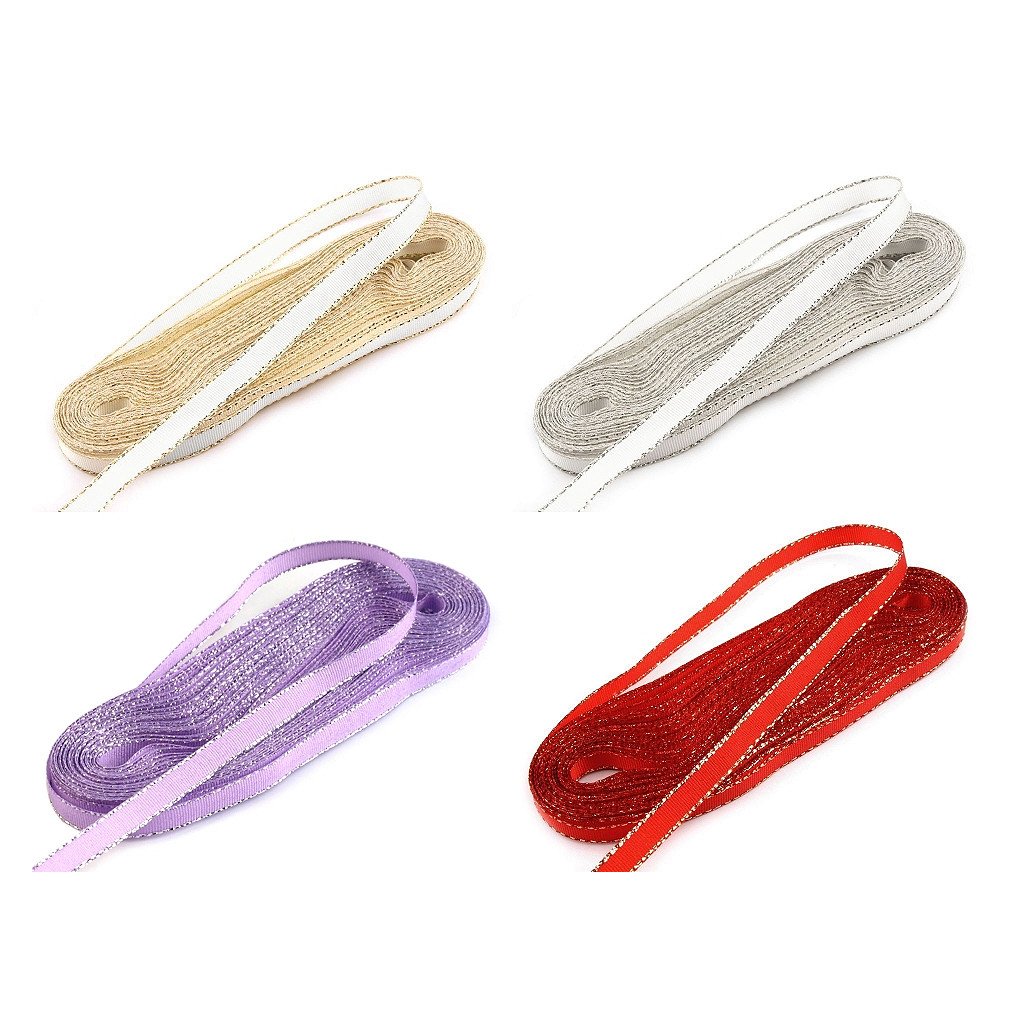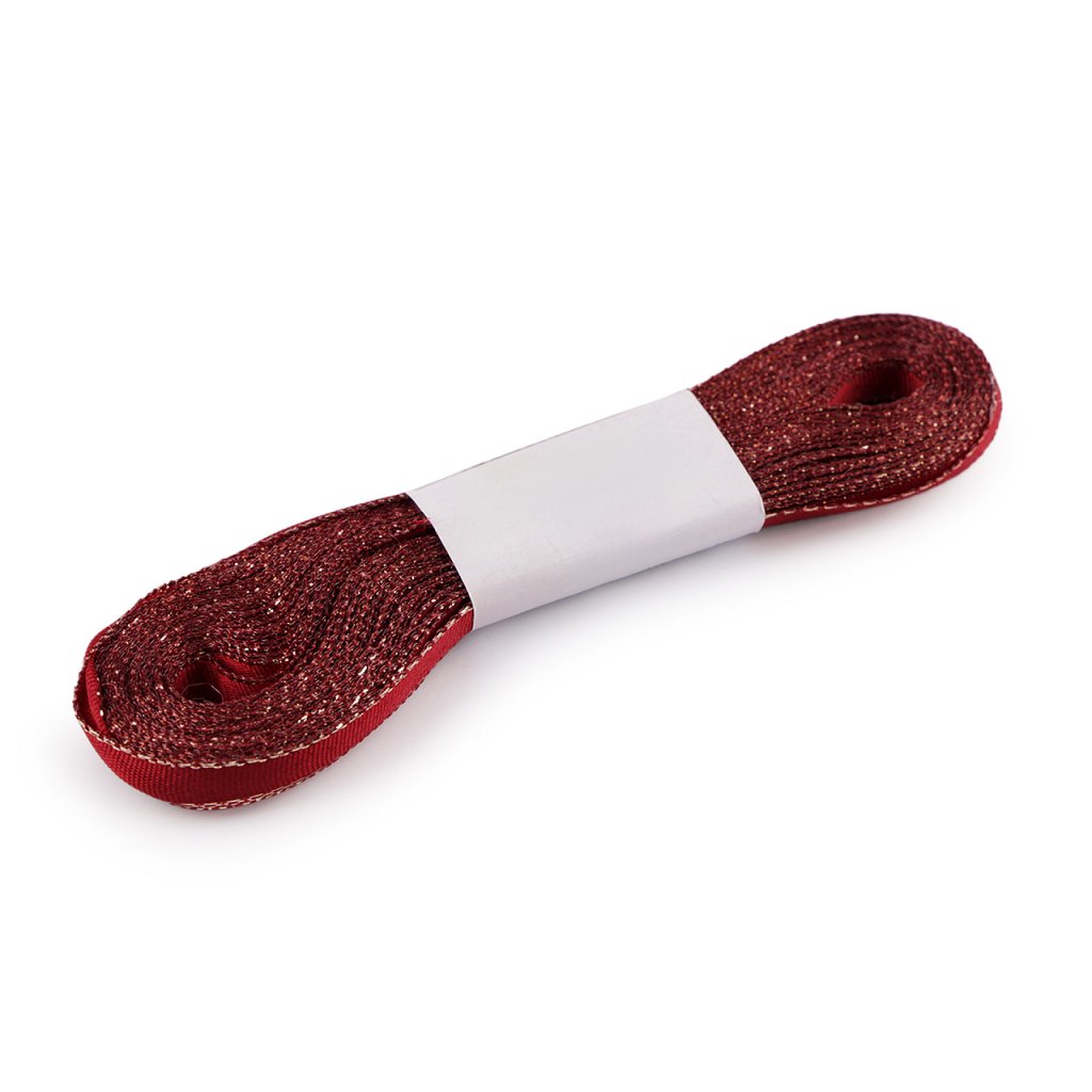 Taftband mit Lurex besticht durch seinen dezenten, eleganten Schimmer. An den Seiten befindet sich Lurex, das Band eignet sich ideal zum Verzieren von Geschenkverpackungen, zur Gestaltung von festlichen Tischdekorationen, Hochzeitsdekorationen und verschiedenen kreativen Projekten. Die Werksnorm der Firma Stuha erlaubt zwei Schnitte auf 10-Meter-Rollen, die miteinander verklebt werden, die Toleranz beträgt bei 10-Meter-Rollen +/- 10 cm.