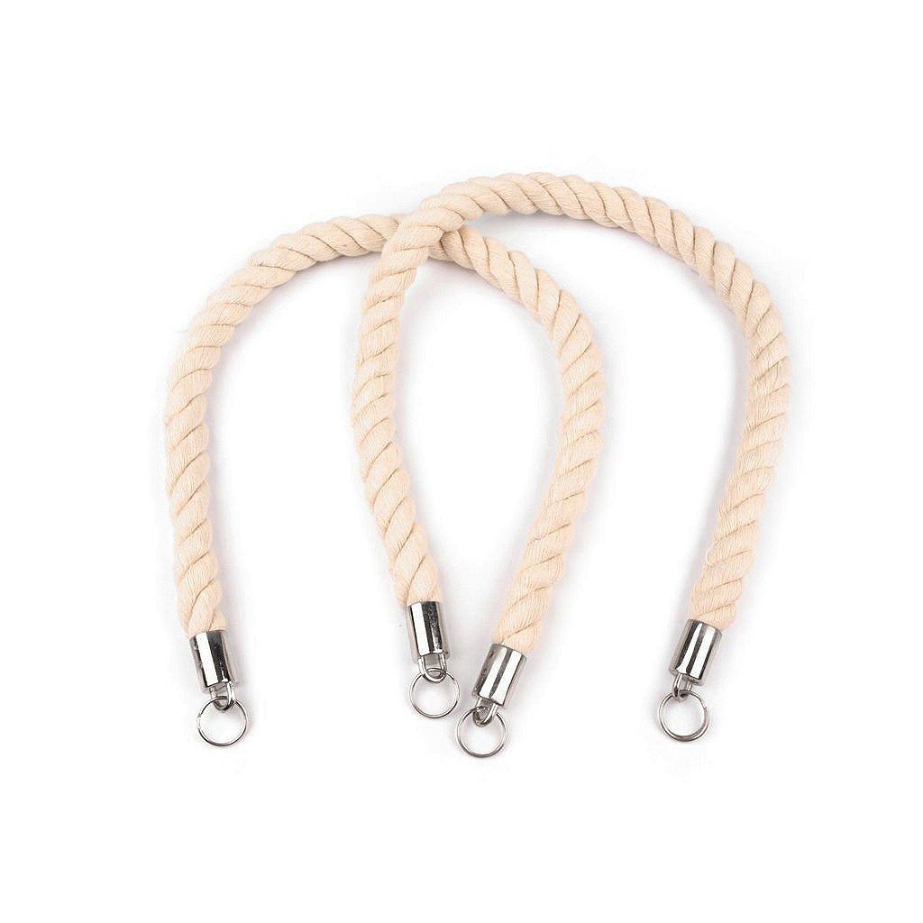 Originelle Taschengriffe sind aus verflochtenem Baumwollgarn hergestellt. Beendet mit Metallösen. Die Taschengriffe sind fest und für Herstellung von Taschen oder Handtaschen ideal.