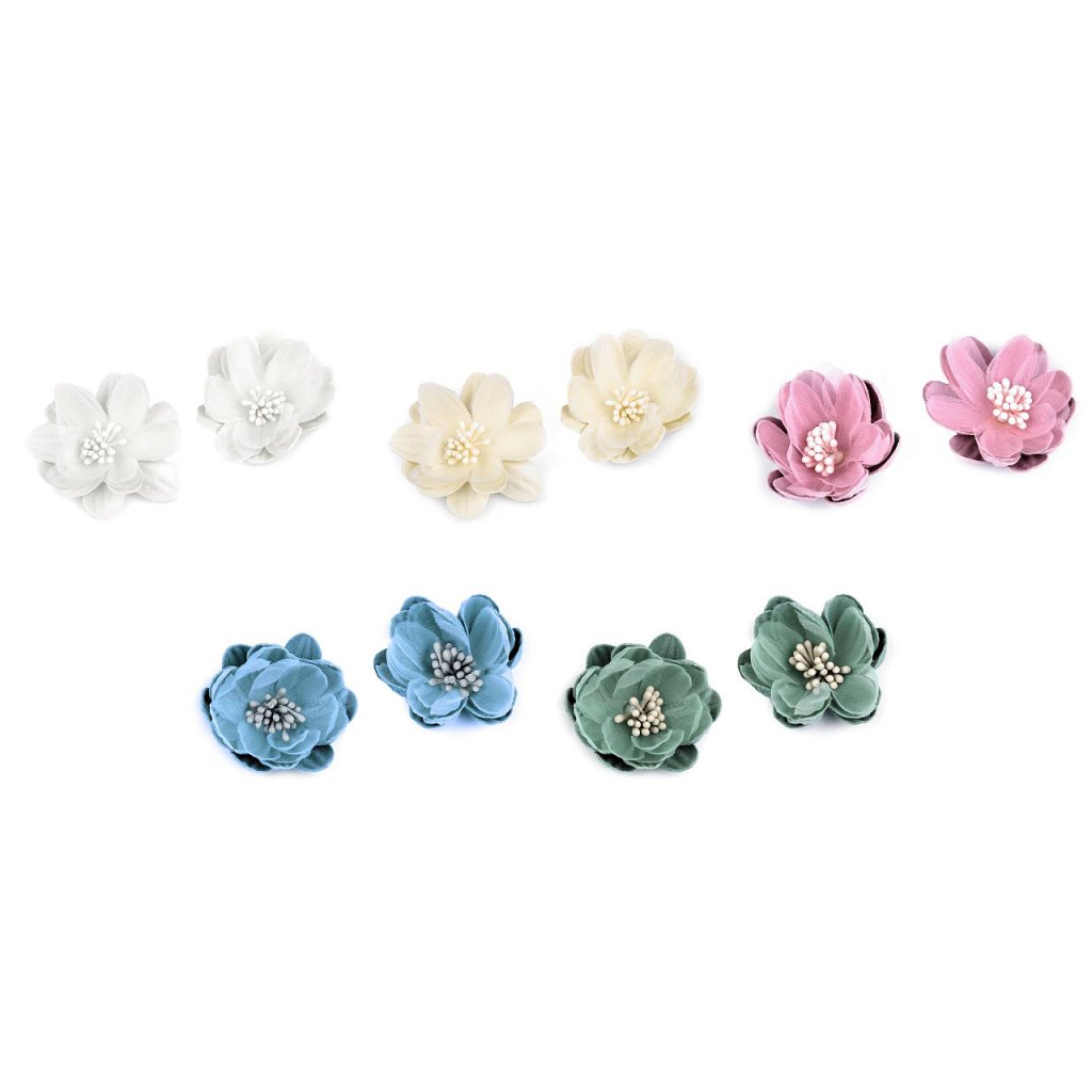 Textilblumen mit Stempel ergänzen Ihre Blumenarrangements, Ikebana oder Kränze perfekt. Sie werden detailliert ausgearbeitet . Auch Stirnbänder, Haarnadeln oder Fascinators können Sie auf ungewöhnliche Weise mit Blumen verzieren. Sie können sie kleben oder nähen.