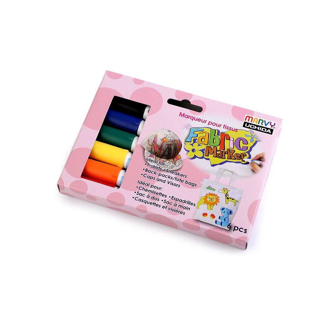 Eine Reihe hochwertiger Marker aus Japan. Sie sind wasserdicht und trocknen sofort aus. Sie müssen nicht über sie bügeln. Sie sind für leichte Stoffe geeignet . Sie können sie auf den meisten Stoffen verwenden, am besten geeignet ist Baumwolle. Um die Farbe zu reparieren, empfehlen wir, sie frühestens nach 24 Stunden zu waschen. Ungiftig, geruchlos Nicht für Kinder unter 3 Jahren geeignet.