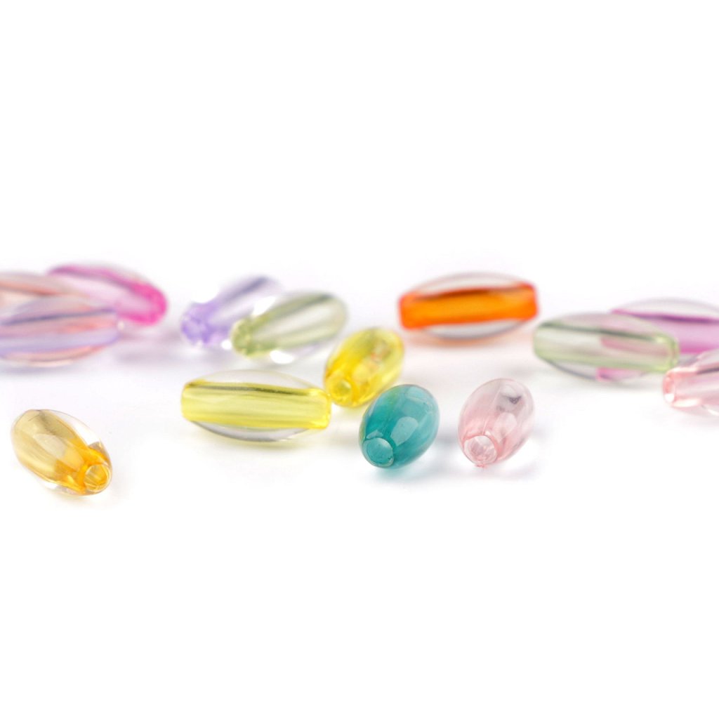 Transparente Kunststoffperlen mit farbigem Durchzug, 6 x 12 mm, Oval