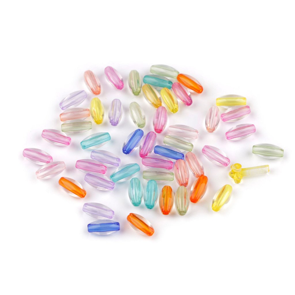 Eine Mischung aus transparenten Perlen und farbigem Faden eignet sich für verschiedene Perlentechniken. Sie haben die Form eines länglichen Ovals und eignen sich zur Herstellung von Halsketten, Armbändern, Ohrringen, Schlüsselanhängern und machen sich auch in Perlenanhängern hervorragend. Ihr großer Vorteil ist ihr geringes Gewicht. In einer 20-g-Packung sind ca. 100 Perlen enthalten.