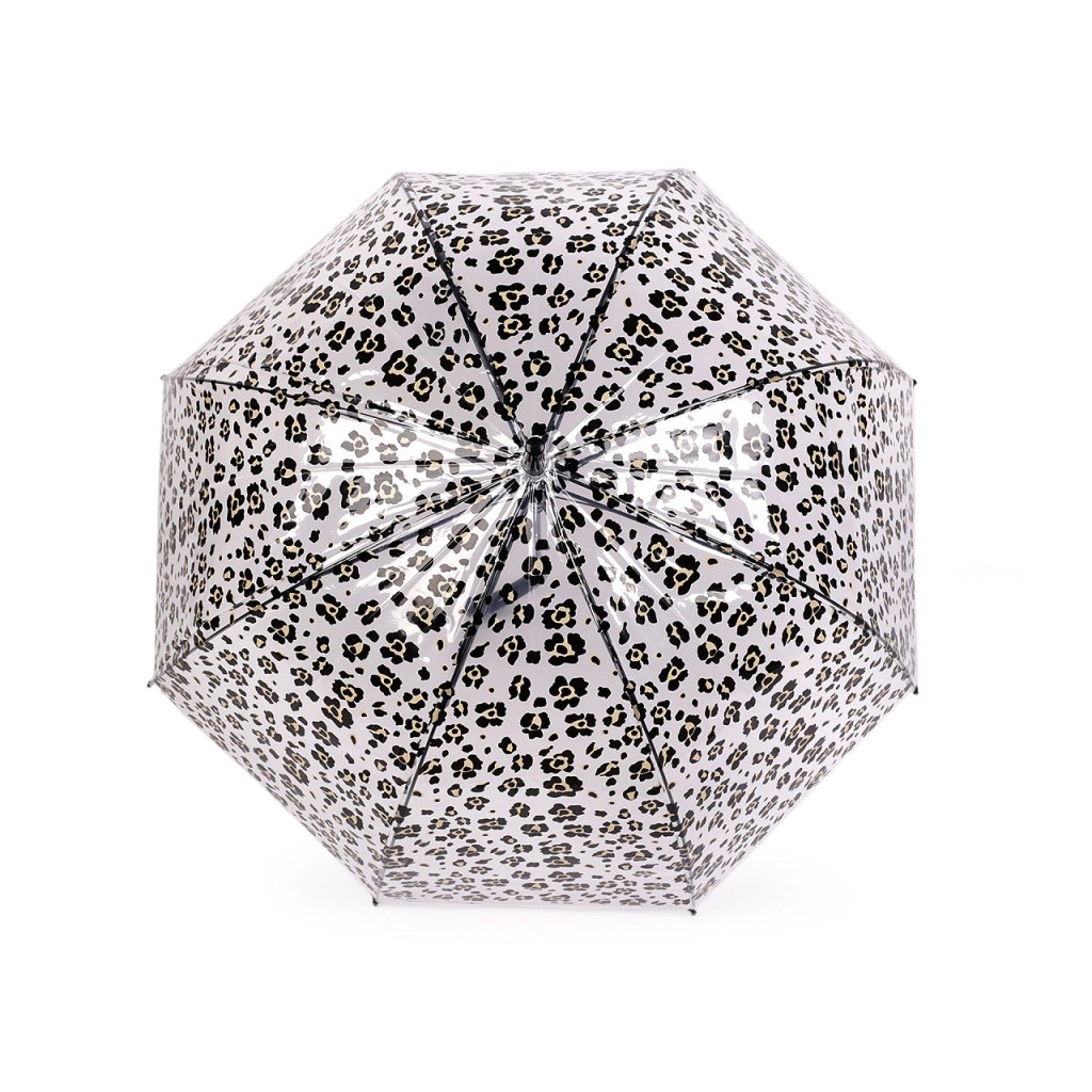 Transparenter Regenschirm für Damen/Mädchen mit Leopardenmuster, Automatik