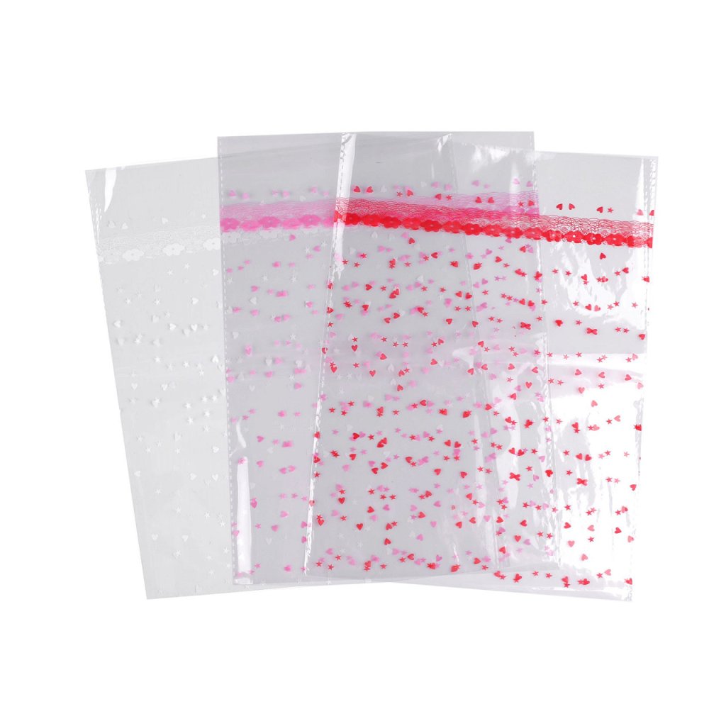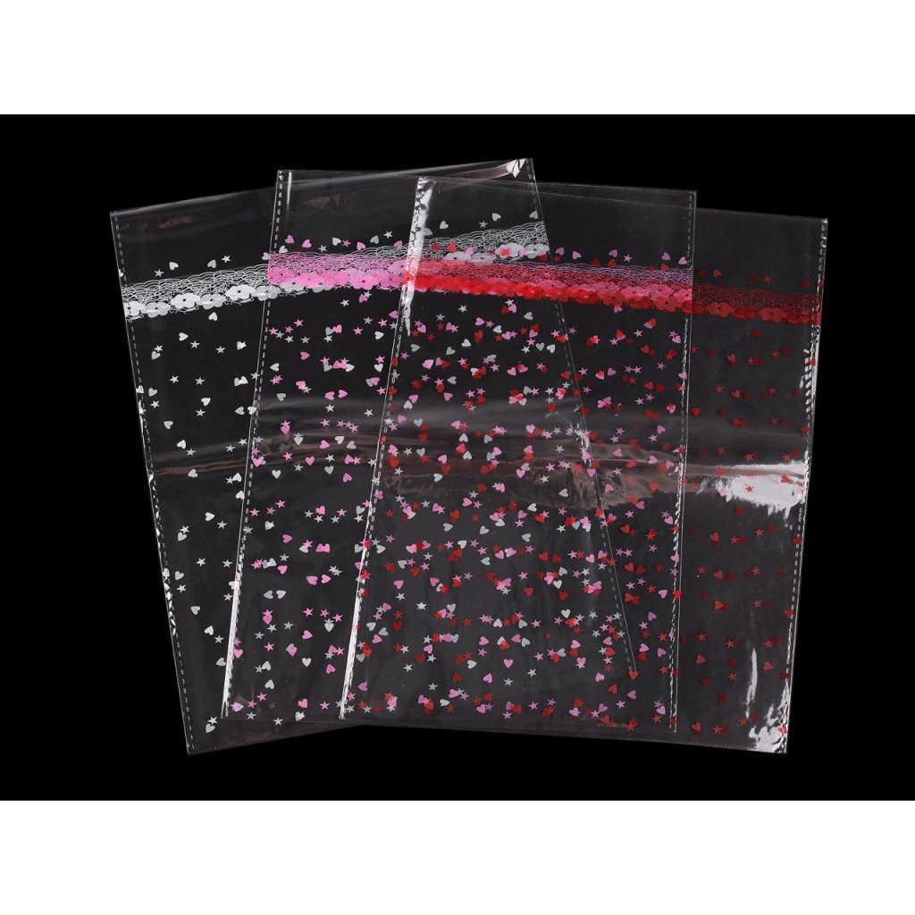 Transparenter Zellophanbeutel mit Herzen, 18 x 25 cm