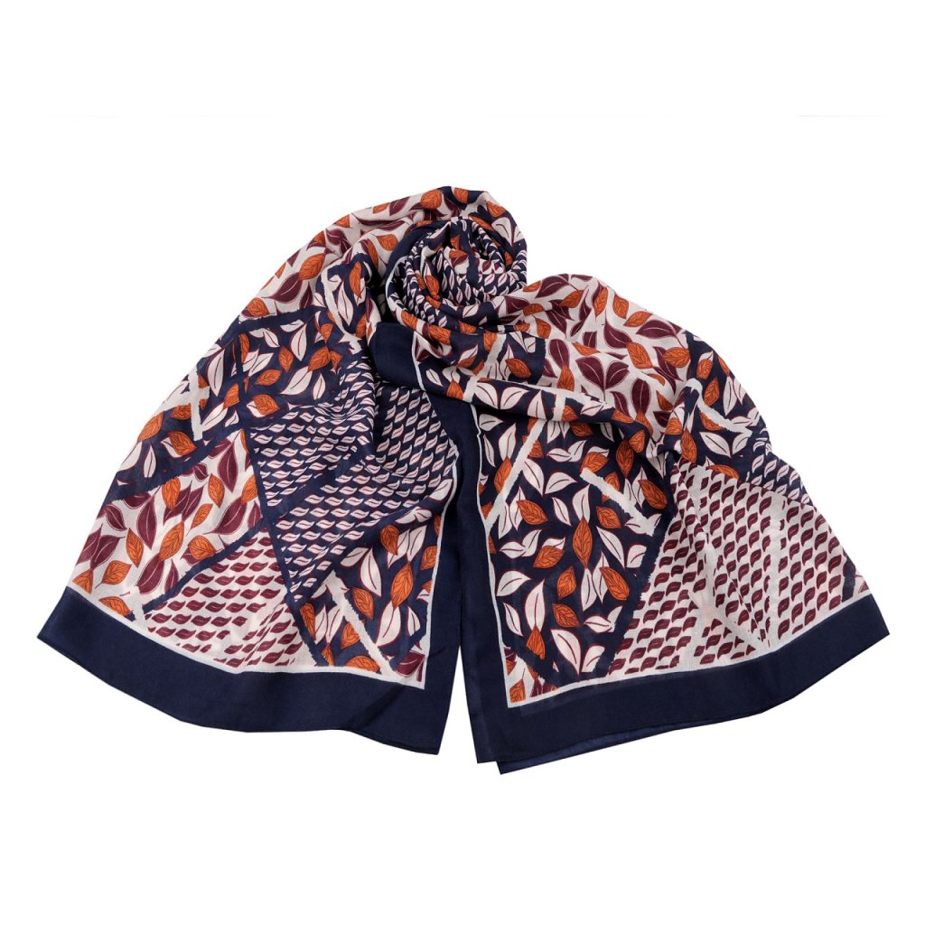 Ein großer doppelseitiger Schal ist mit einem Blattmotiv verziert. Sie können es als Accessoire zu Mänteln, Pullovern, T-Shirts und Kleidern tragen. Es fühlt sich sehr angenehm an, knittert nicht und das Material fügt sich wunderbar zusammen. Schals haben möglicherweise falsche Etiketten, die tatsächliche Zusammensetzung ist Viskose. Wir entschuldigen uns für dieses Versäumnis und danken Ihnen für Ihr Verständnis.