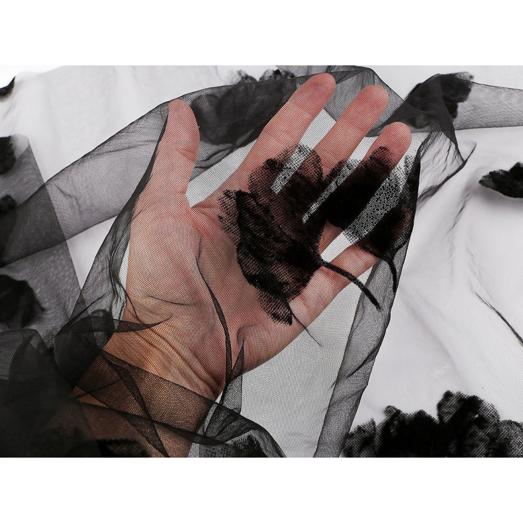 Tüll mit Ginkgo-Biloba-Blättern ist flexibel, weich und fließend. Er wirkt luxuriös. Das Blattmuster wirkt samtig weich . Sie können den Tüll zum Nähen von Abendkleidern, Röcken, eleganten Blusen, Boleros, Schals usw. verwenden. Es trocknet gut und schnell. Der Durchmesser des Auges beträgt ca. 0,7 mm.