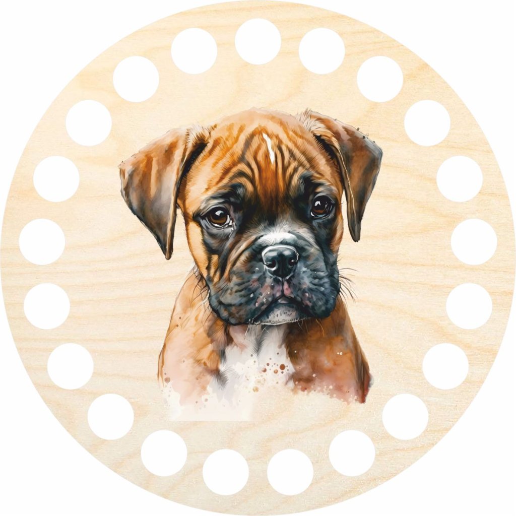 Dieser runde Holzboden aus Birken-Sperrholz mit Boxermotiv mit einem Durchmesser von 10 cm ist nicht nur eine solide Basis für gehäkelte Untersetzer, sondern kann auch als stilvoller Boden oder Holzdeckel verwendet werden.
