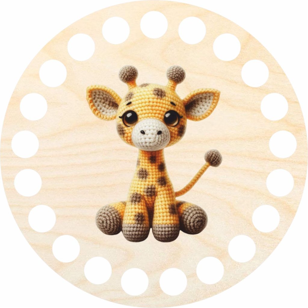 Dieser runde Boden aus Birken-Sperrholz mit einem Durchmesser von 10 cm und einem Häkeltiermotiv ist eine solide Basis für gehäkelte Untersetzer, kann aber auch als stilvoller Boden oder Holzdeckel verwendet werden.