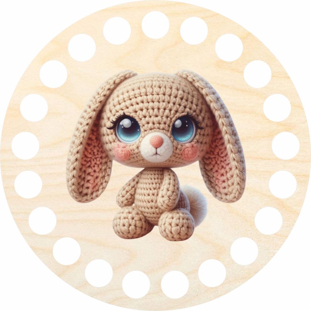 Dieser runde Boden aus Birken-Sperrholz mit einem Durchmesser von 10 cm und einem Häkeltiermotiv ist eine solide Basis für gehäkelte Untersetzer, kann aber auch als stilvoller Boden oder Holzdeckel verwendet werden.