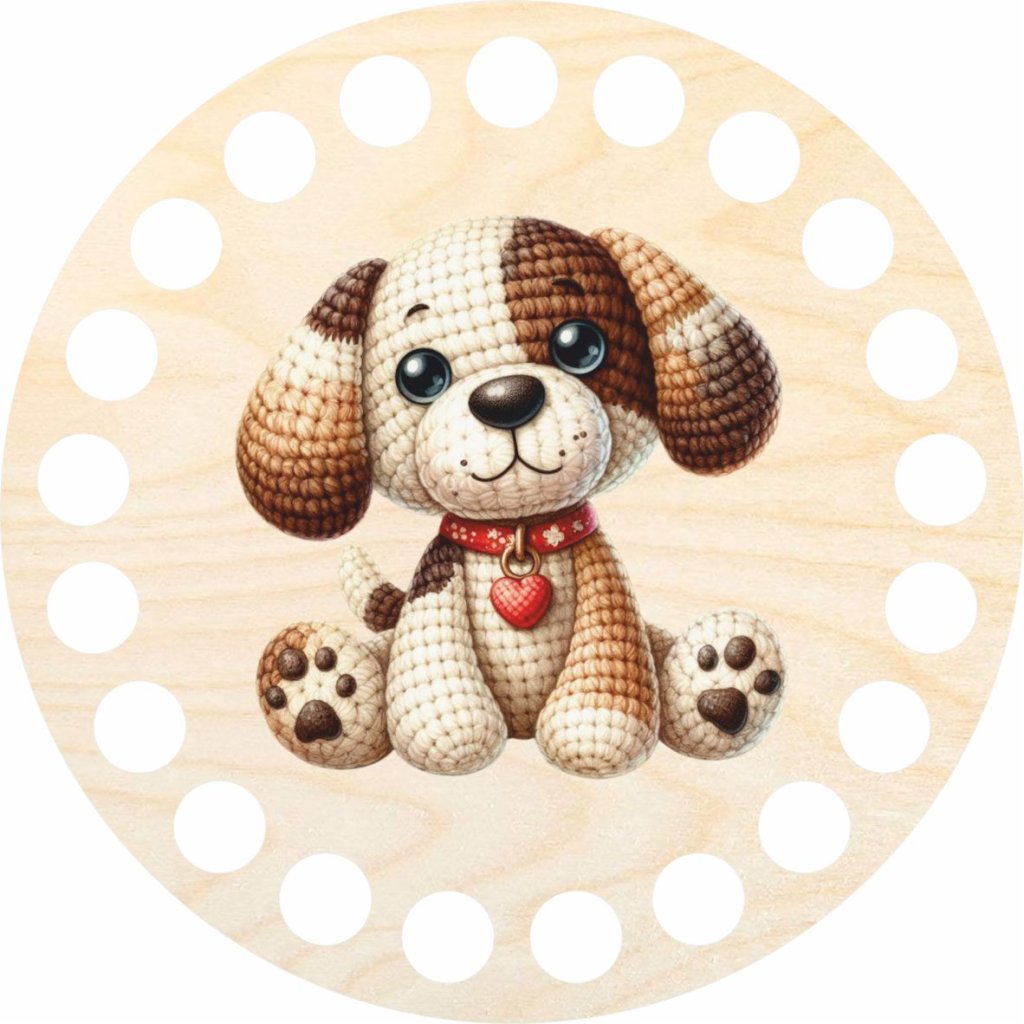 Dieser runde Boden aus Birken-Sperrholz mit einem Durchmesser von 10 cm und einem Häkeltiermotiv ist eine solide Basis für gehäkelte Untersetzer, kann aber auch als stilvoller Boden oder Holzdeckel verwendet werden.
