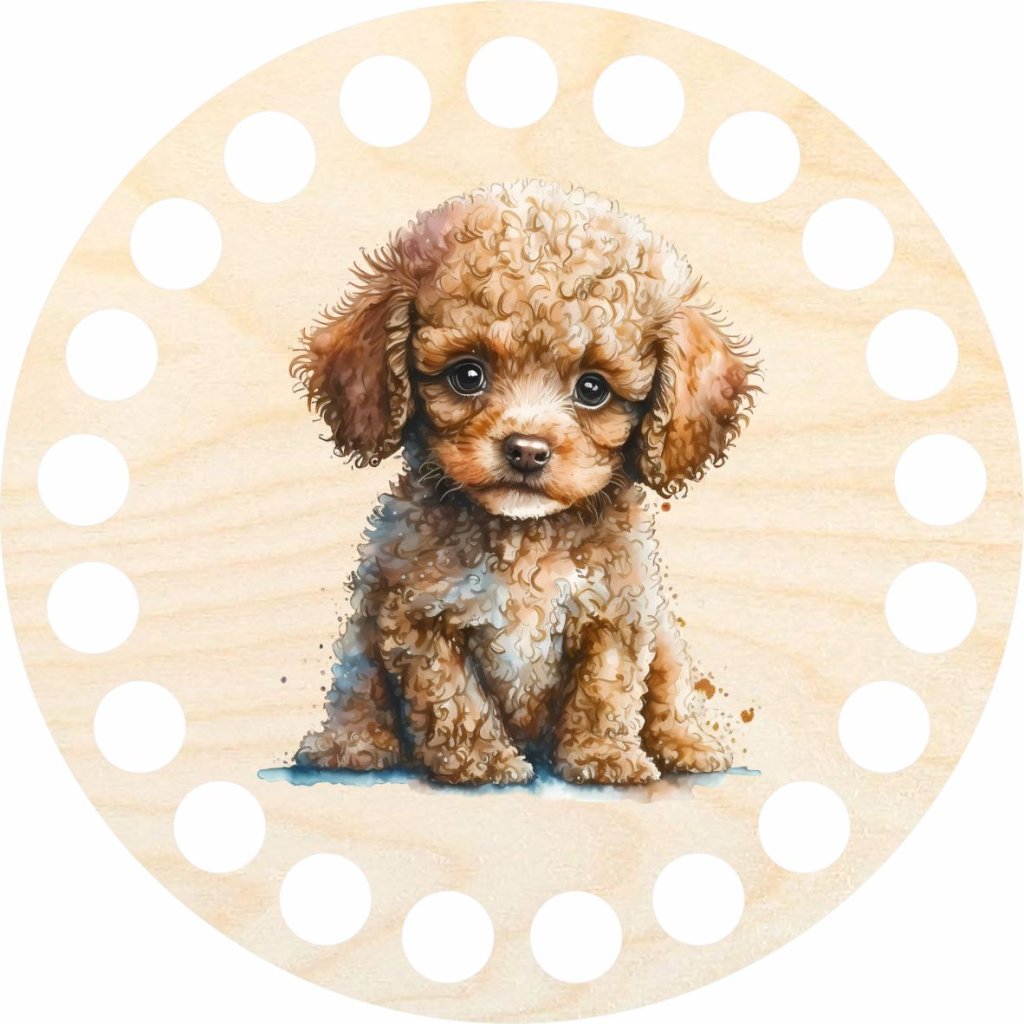 Dieser runde Holzboden aus Birken-Sperrholz mit Pudelmotiv mit einem Durchmesser von 10 cm ist nicht nur eine solide Basis für gehäkelte Untersetzer, sondern kann auch als stilvoller Boden oder Holzdeckel verwendet werden.