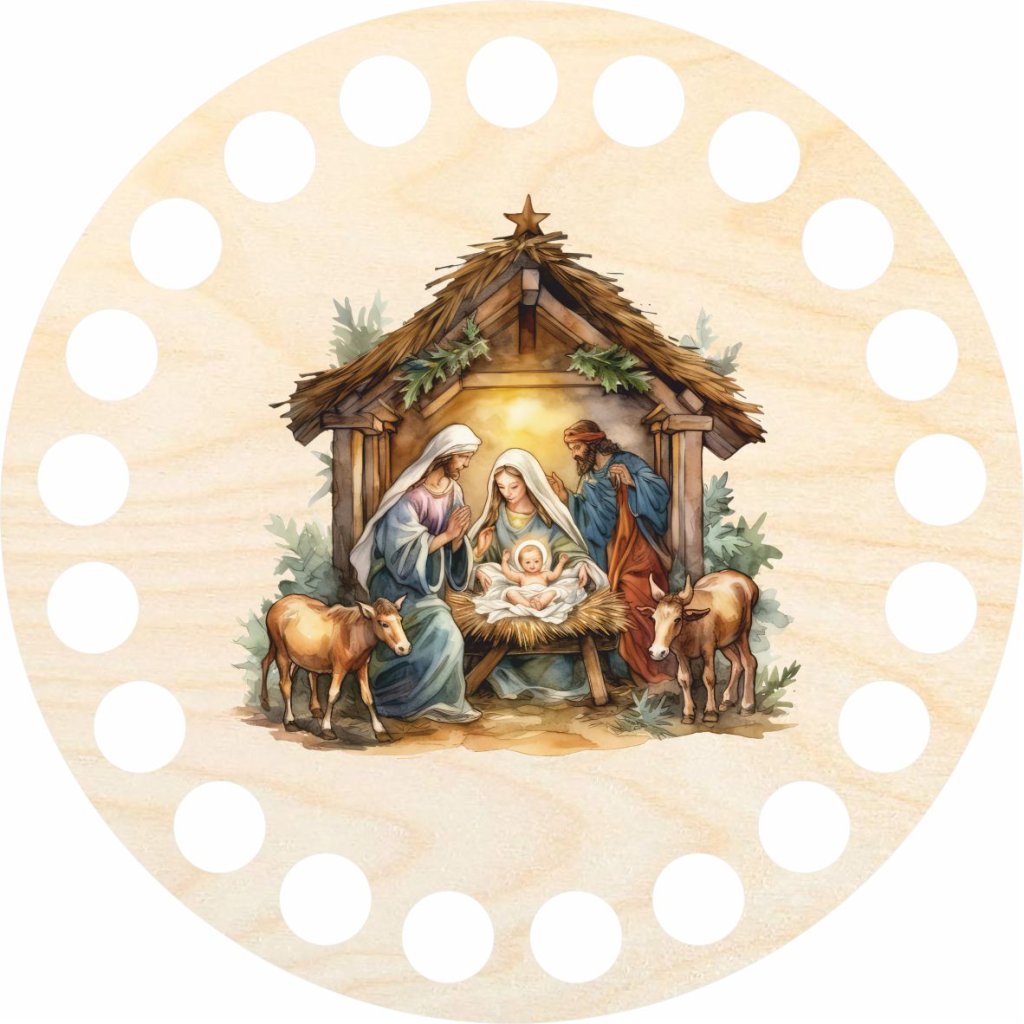 Holzdeckel für Häkelkörbe aus Spaghetti-Garn. Kann auch für die Herstellung von Untersetzern verwendet werden. Das Motiv wird mit einem UV-Drucker auf einen Deckel aus Birken-Sperrholz gedruckt.