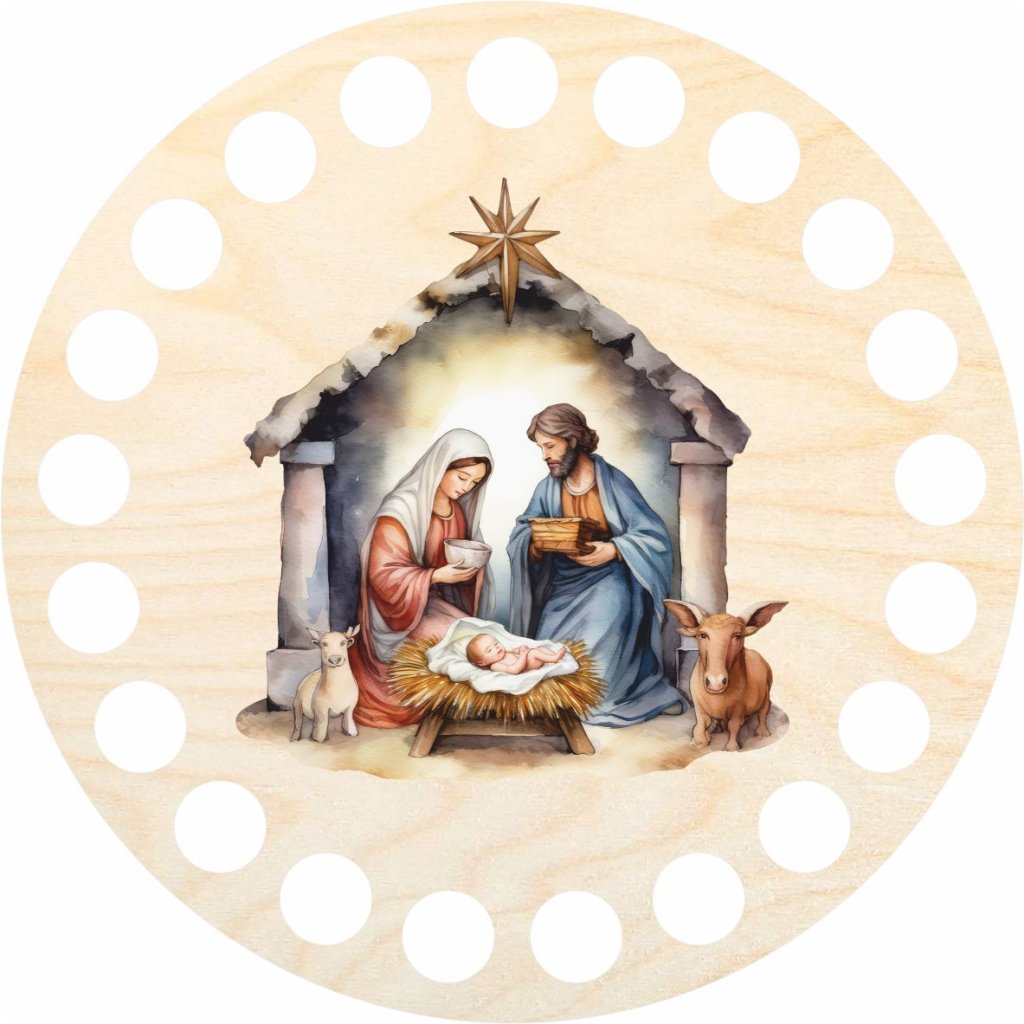 Holzdeckel für Häkelkörbe aus Spaghetti-Garn. Kann auch für die Herstellung von Untersetzern verwendet werden. Das Motiv wird mit einem UV-Drucker auf einen Deckel aus Birken-Sperrholz gedruckt.