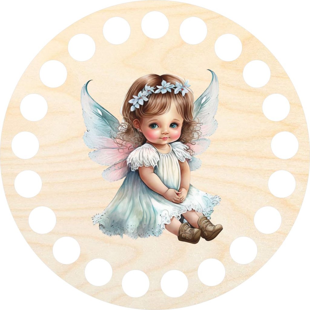 Holzdeckel für Häkelkörbe aus Spaghetti-Garn. Kann auch für die Herstellung von Untersetzern verwendet werden. Das Motiv wird mit einem UV-Drucker auf einen Deckel aus Birken-Sperrholz gedruckt.