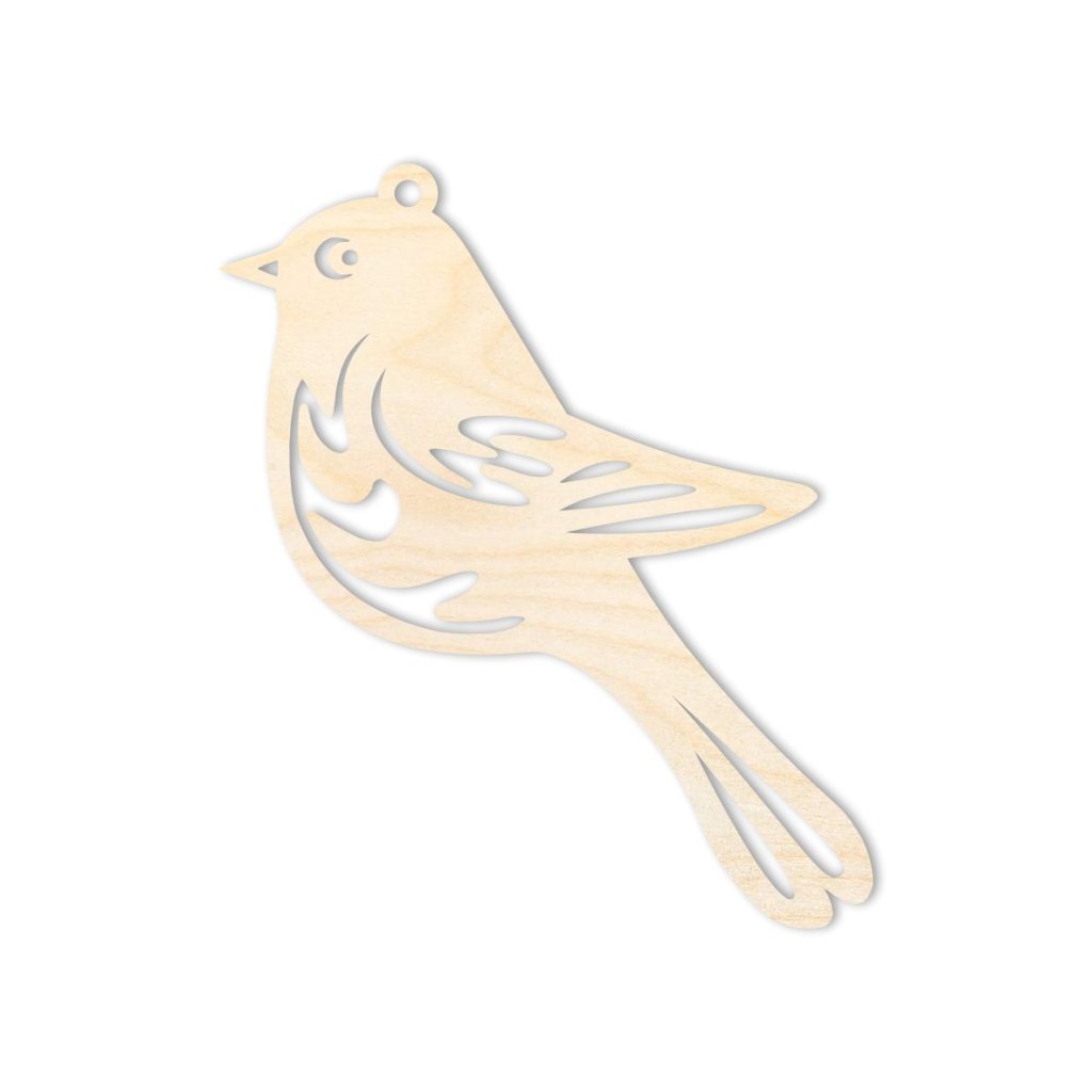 Holzvogel in der Größe 7 x 6 cm, geschnitzt aus 3 mm dickem Birkensperrholz. Preis für 1Stück
