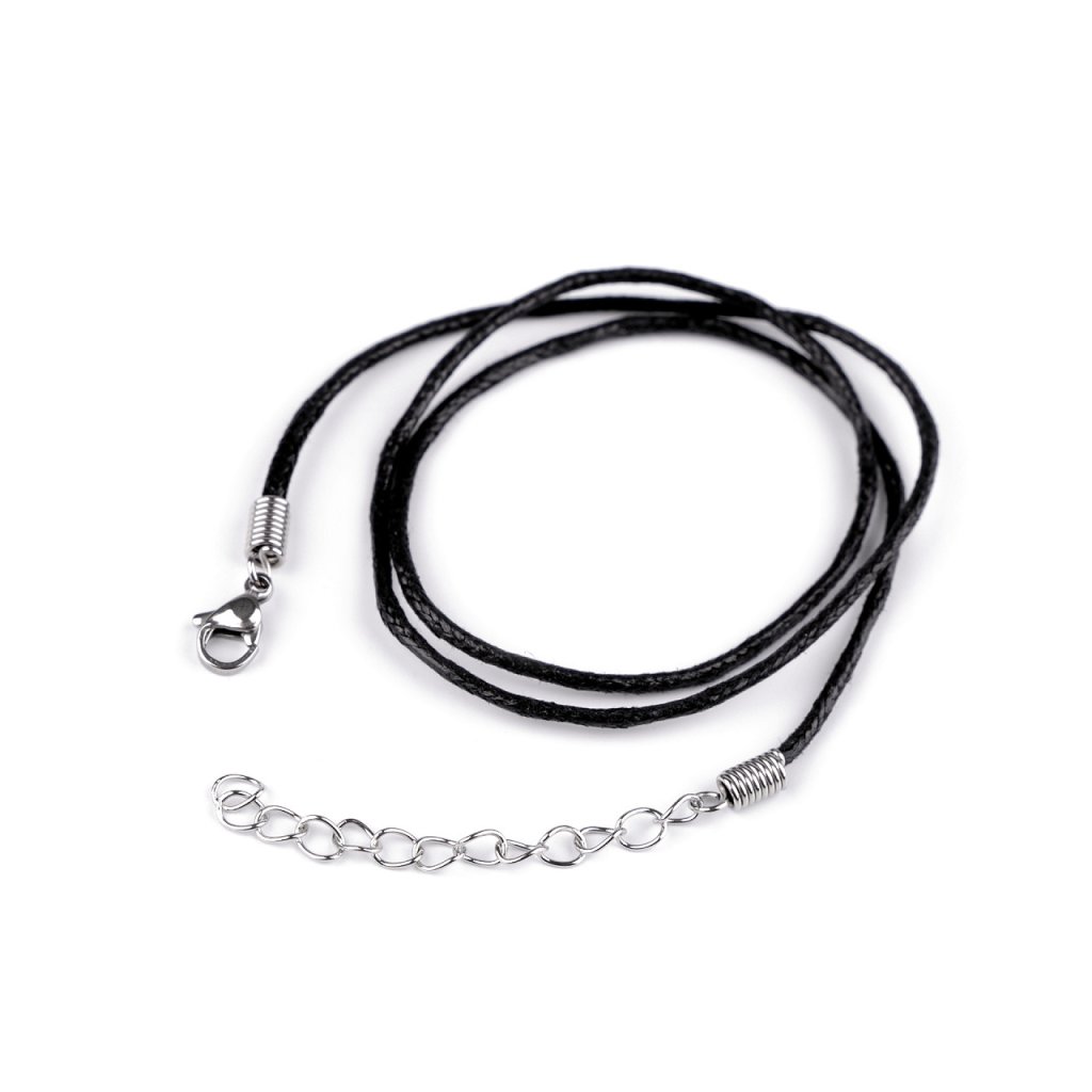 Die Baumwollkordeln sind mit Wachs oberflächenbehandelt . Sie haben eine komplette Edelstahlbefestigung am Karabiner. Sie müssen nur noch den Anhänger aufsetzen und losfahren. Eine Verlängerungskette ist bei diesem fertigen Produkt selbstverständlich. Länge 45 cm + 5 cm Verstellkette. Karabiner 7 x 11 mm, Schnurdurchmesser 1,7 mm.