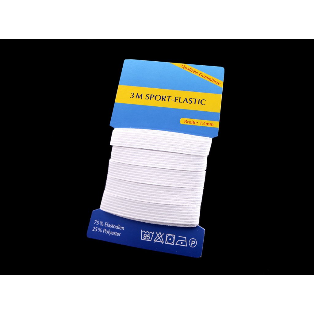 Sie können die flache Unterwäsche elastisch für Kleidung und Accessoires verwenden. Es eignet sich für Unterwäsche, Strümpfe, Jogginghosen, Pyjamas und Sportbekleidung. Das Gummiband ist weich in der Spannung. Die Gummibänder sind in einem Satz von 3 Karten in einer Breite von 6; 8 und 13 mm . Gummibänder mit einer Breite von 6 und 8 mm sind in einer Rolle von 5 m. Das Gummiband mit einer Breite von 13 mm ist in einer Rolle von 3 m.