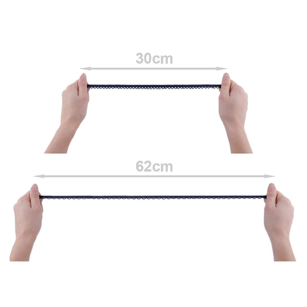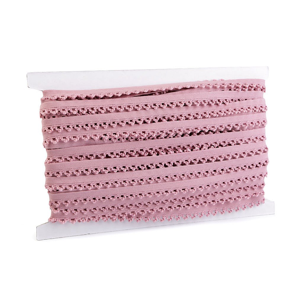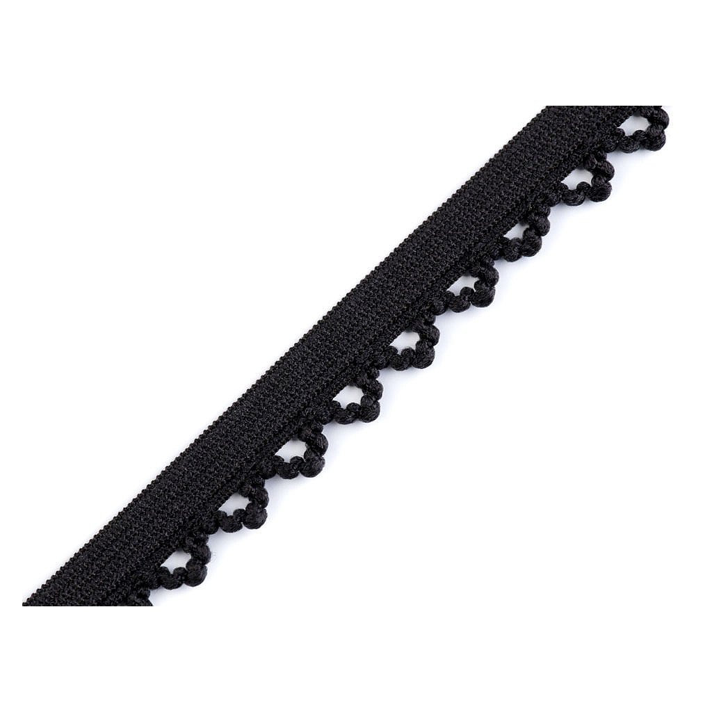 Dekoratives Gummiband mit gewölbtem Rand. Es ist elastisch (ziehend), nach dem Dehnen kehrt es in seinen ursprünglichen Zustand zurück. Anwendung: Elastik wird zum Futter von Unterwäsche, Strumpfhaltern, Blusen, Kleidern usw. verwendet. Es eignet sich auch zur Herstellung von Hemden, Hosen oder Büstenhaltern. Spitze hat eine Breite von 5 mm.