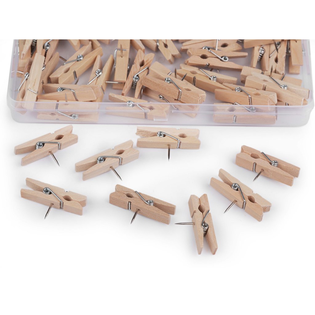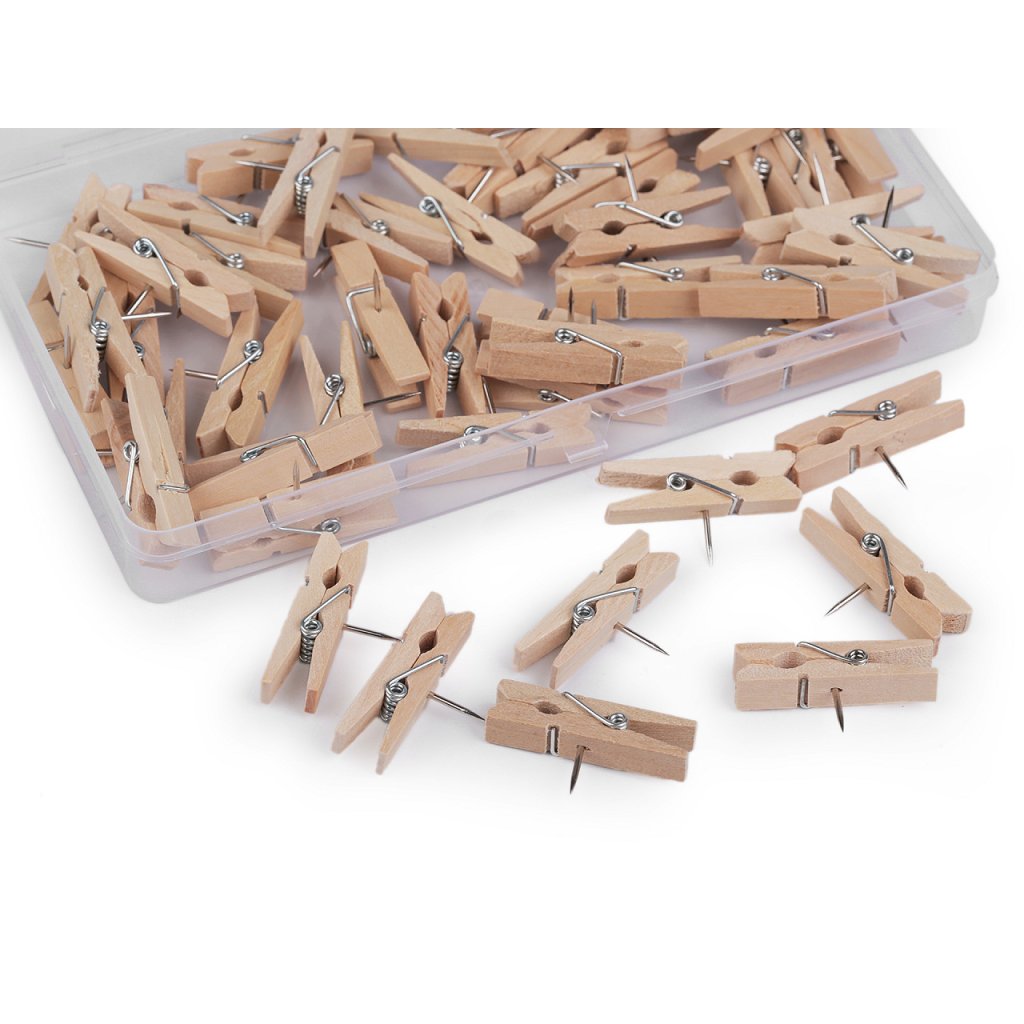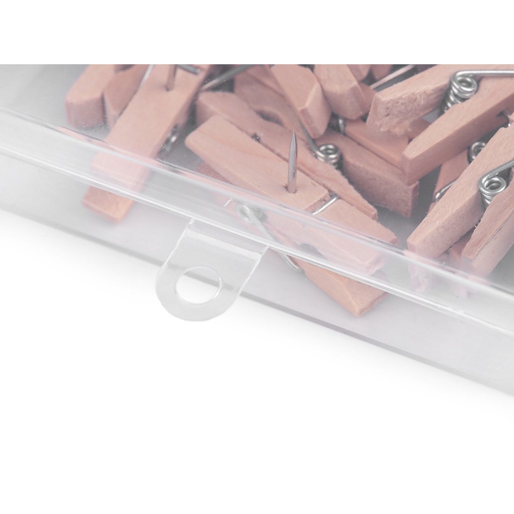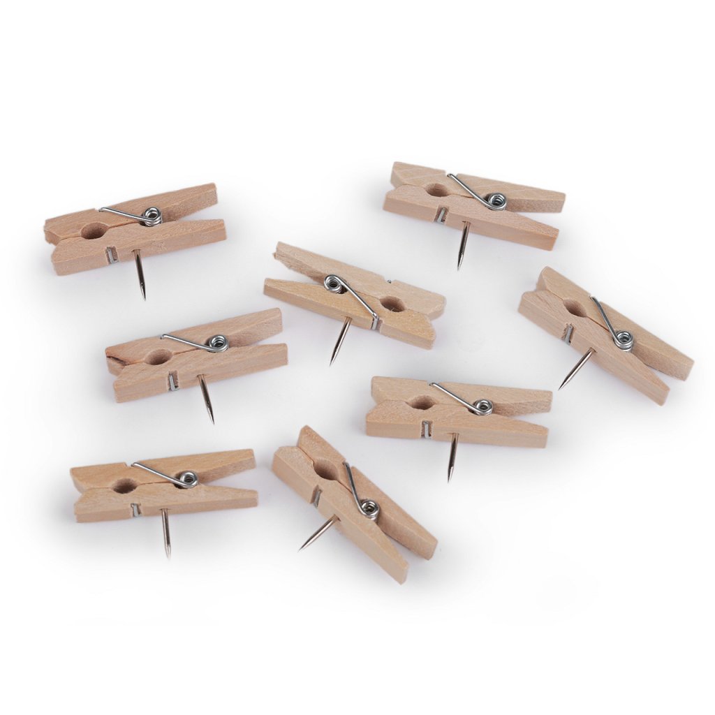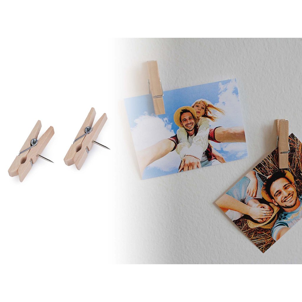 Die Mini-Holzklammern verfügen über einen Nagel , mit dem Sie sie problemlos an der Wand, am Holz und an der Pinnwand befestigen können. Sie können sie für Fotos, Dekorationen, aber auch im Büro verwenden. Die Länge der Gewürznelke beträgt 10 mm. Die Heringe sind in einer Plastikbox zu 50 Stück verpackt.