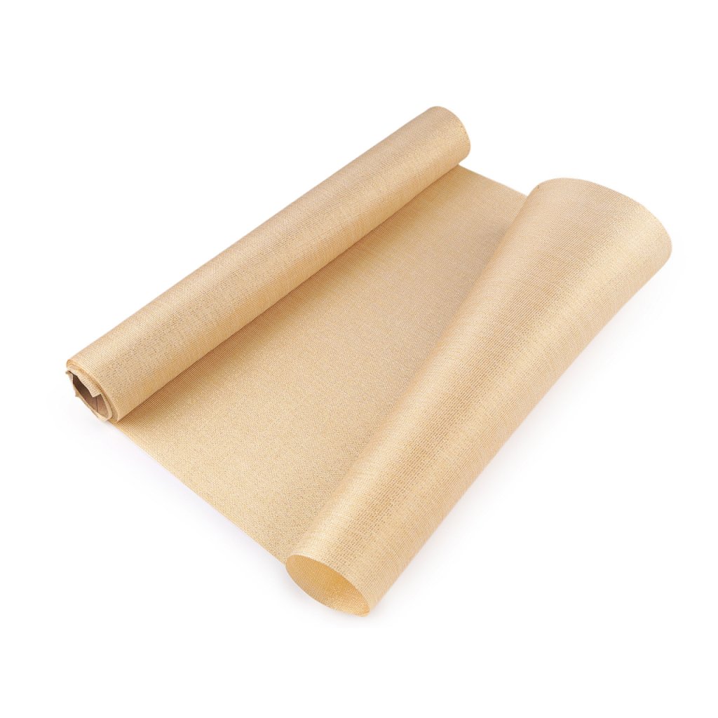 Der weihnachtliche Dekostoff erhält durch seine schimmernden Lurexfasern einen Hauch von Eleganz und Luxus und ist als Läufer oder Tischset ein echter Hingucker bei der Weihnachts- und Winterdekoration. Die Kanten des Materials sind versiegelt, fransen jedoch beim Schneiden aus.