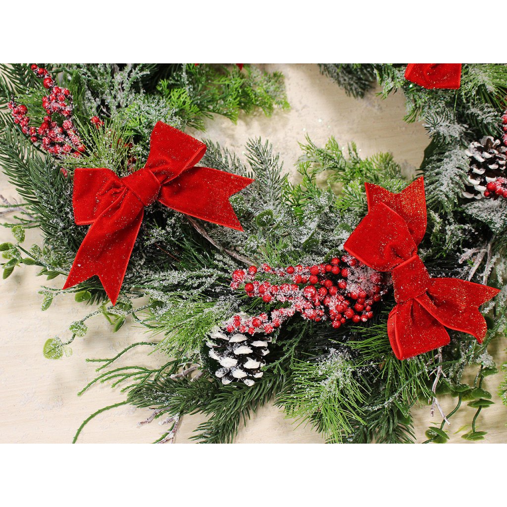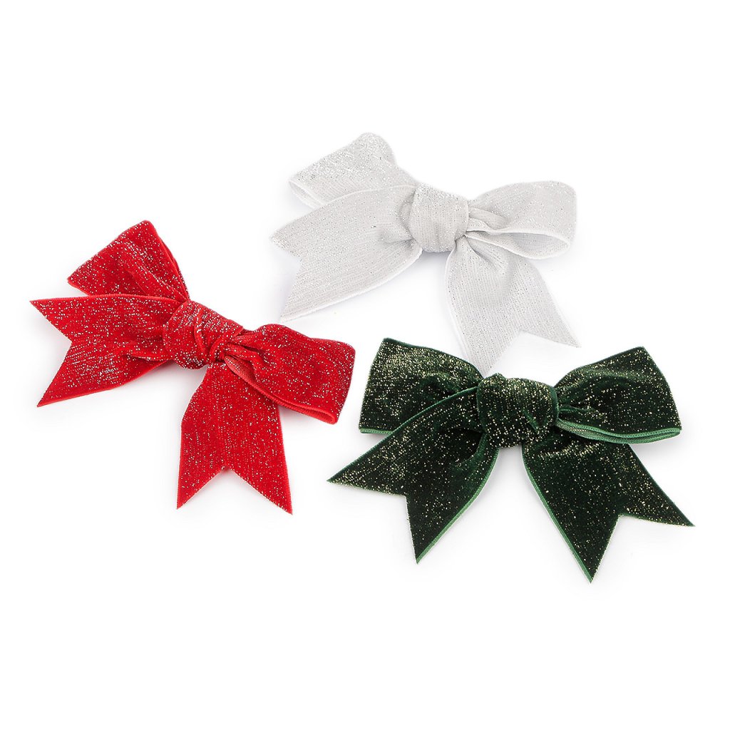 Mit den Weihnachtsschleifen aus Samt können Sie Bäume, Geschenke, Kränze, Schachteln, Blumenarrangements usw. schmücken. Die Maße der Varianten Nr. 1, 2, 6 betragen ca. 11 x 9 cm und sind mit glitzerndem Lurex gewebt . Die Maße der Varianten Nr. 3, 4, 5 betragen ca. 11 x 11 cm und sind ohne Lurex .