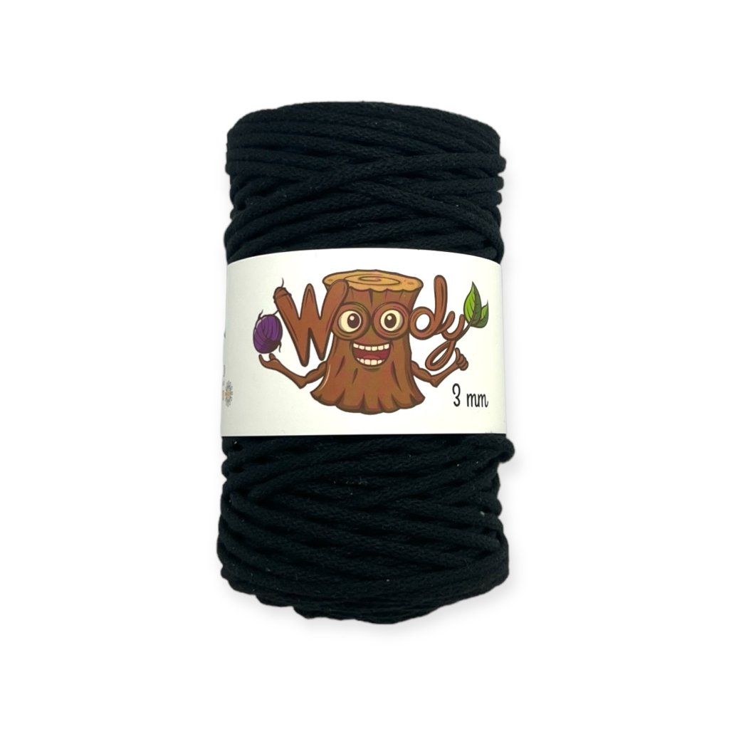 Baumwollgarn Woody 3 mm – Schwarz 🧶