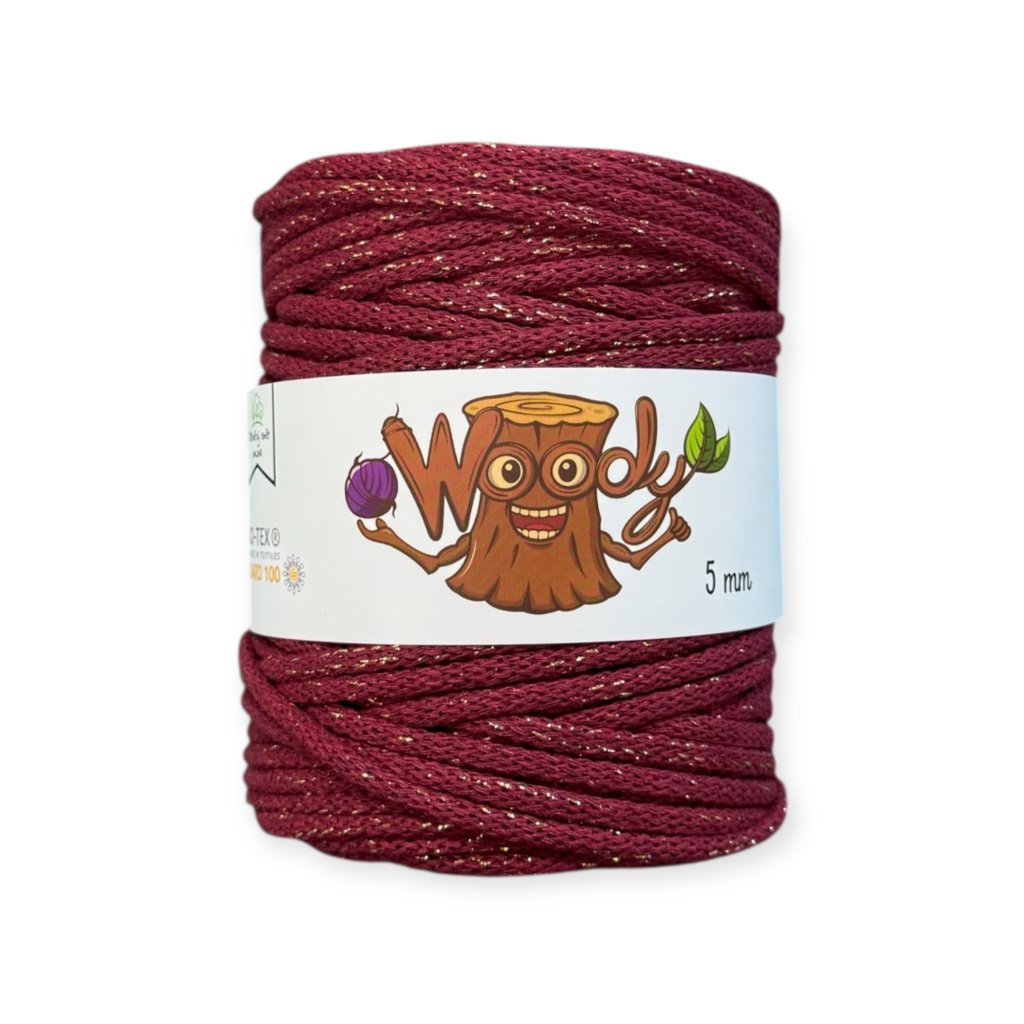 Woody 5 mm - Burgunderrot mit Goldfaden (100m)